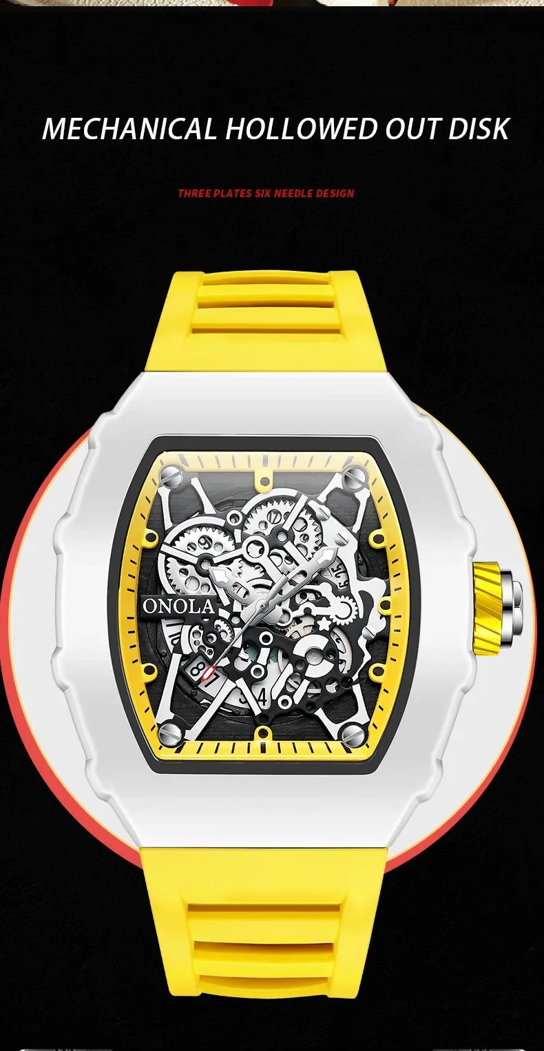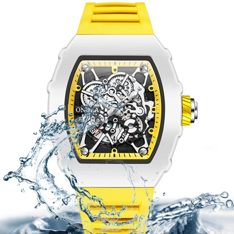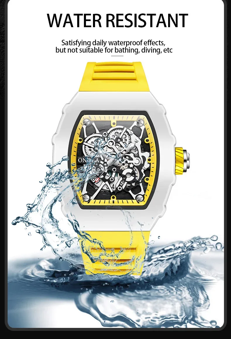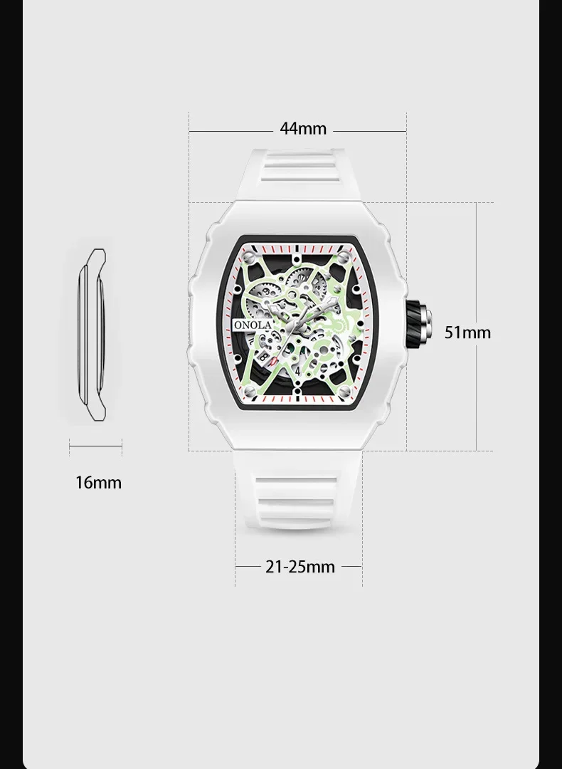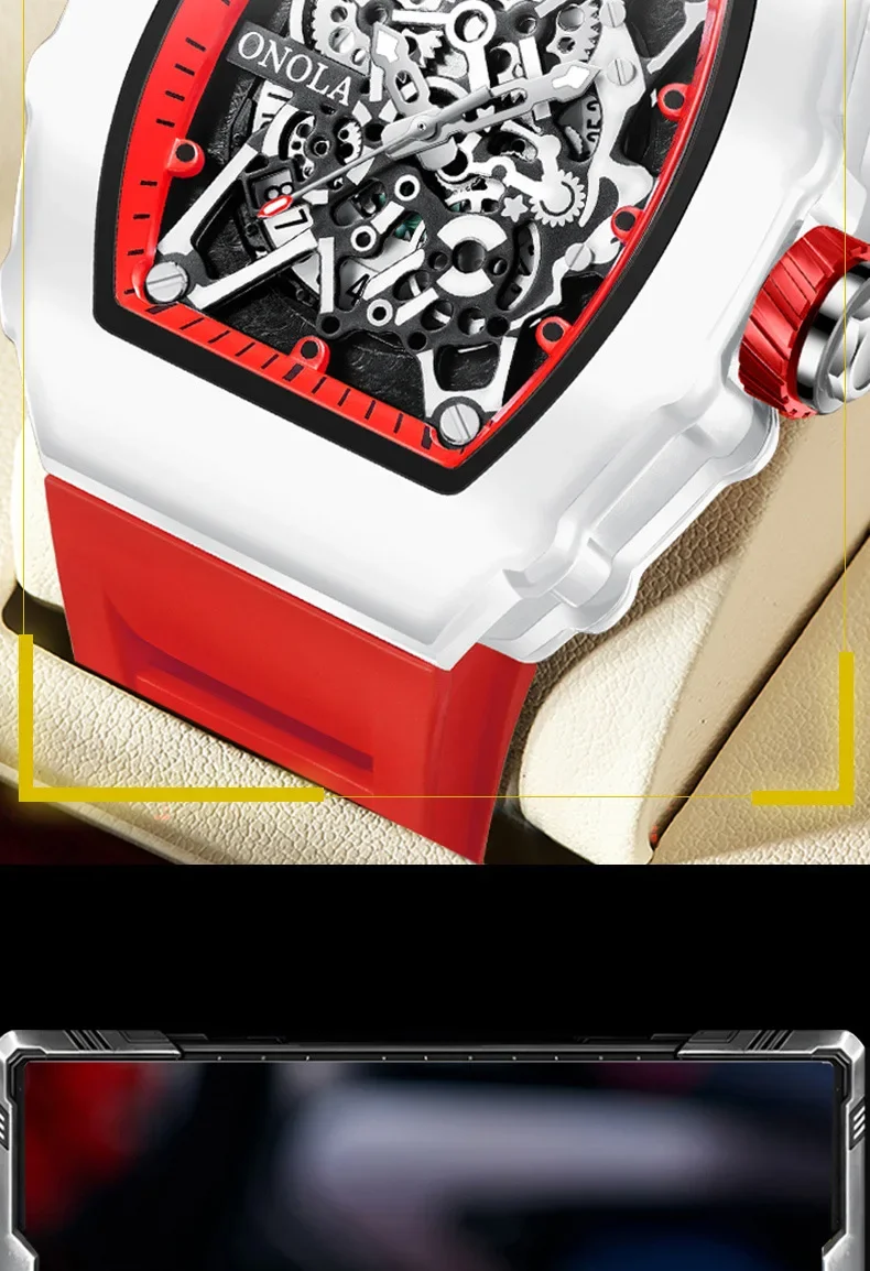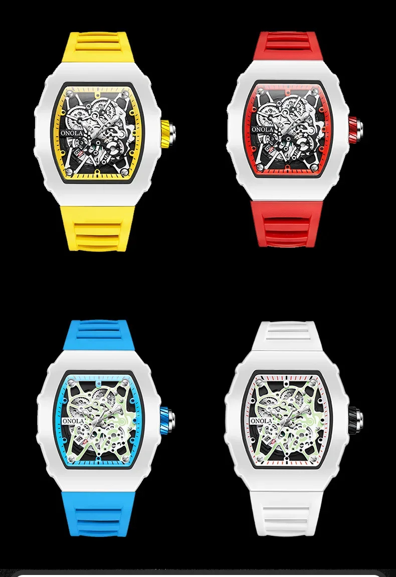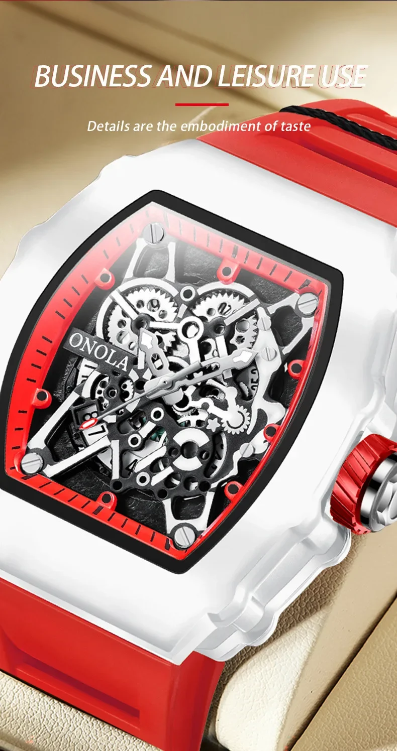 Gift Box Watches for Man ONOLA 3827WGM Tonneau Trend White Quartz Wristwatch Sports Silicone Strap Luminous Waterproof Man Watch