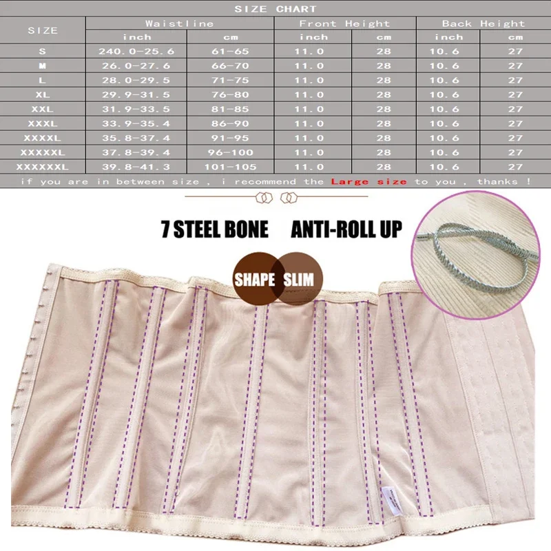 6 rows hook & eye closure,high waist 28 cm,7 spiral steel bones