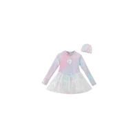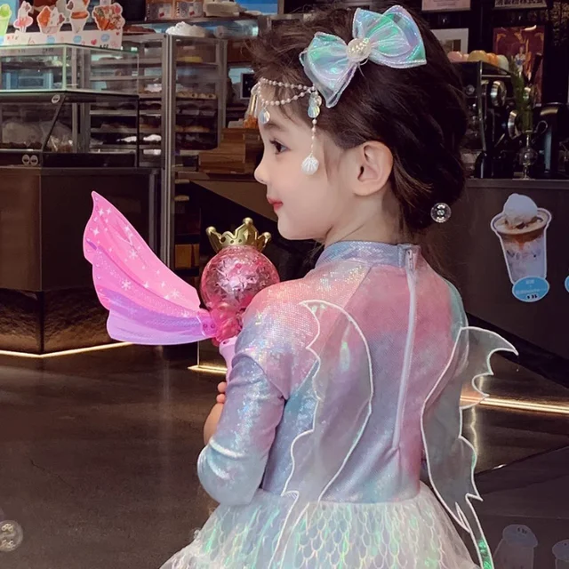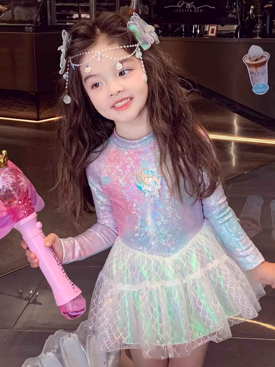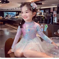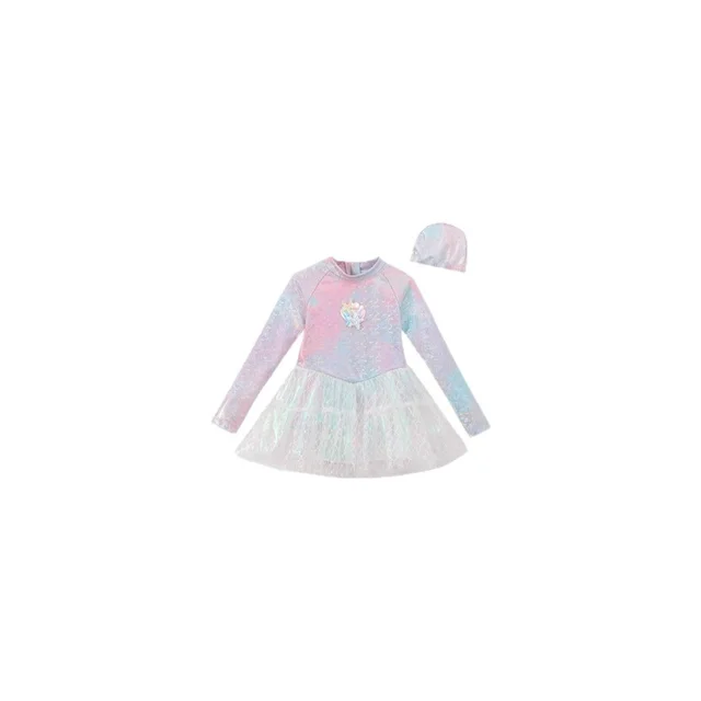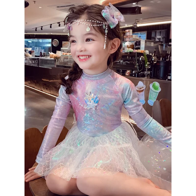 Girl Mermaid Swimsui New Summer Kids Long Sleeve Back Zipper Design One-Pieces Swimwear Girls Sweet Princess Swim Dress H82193