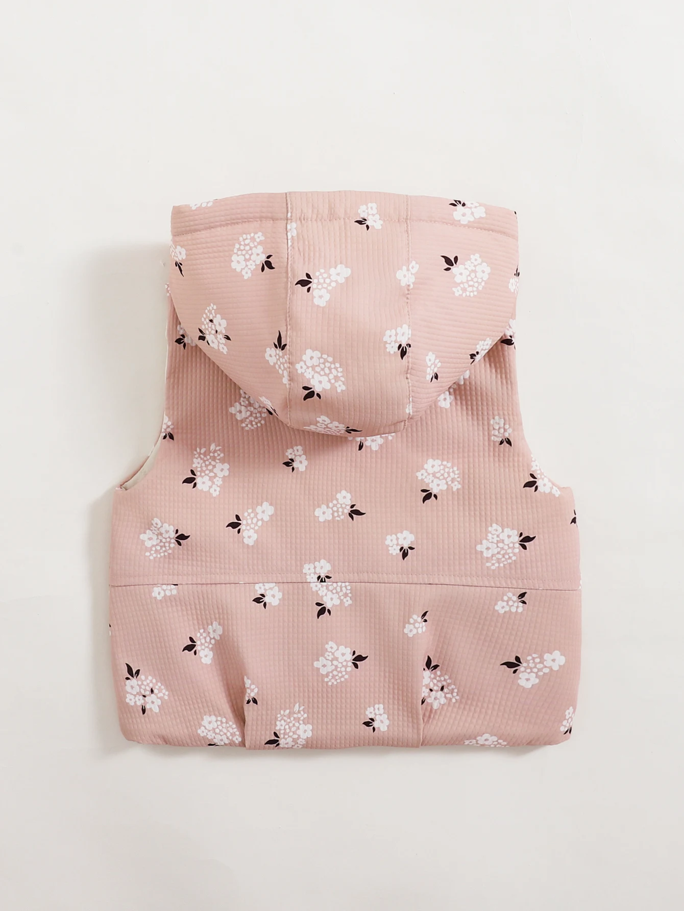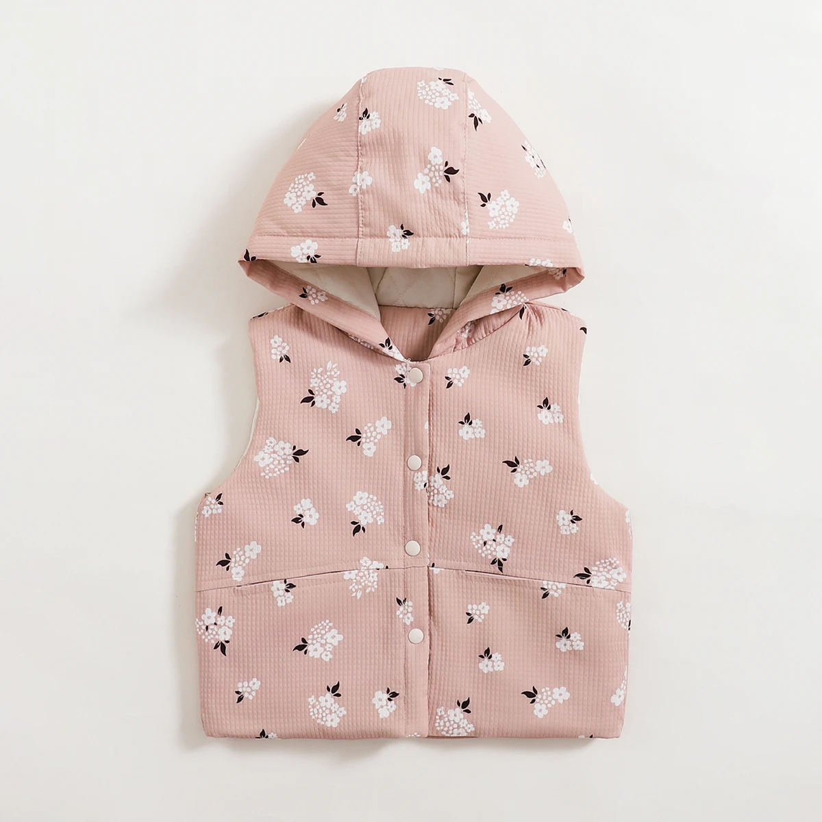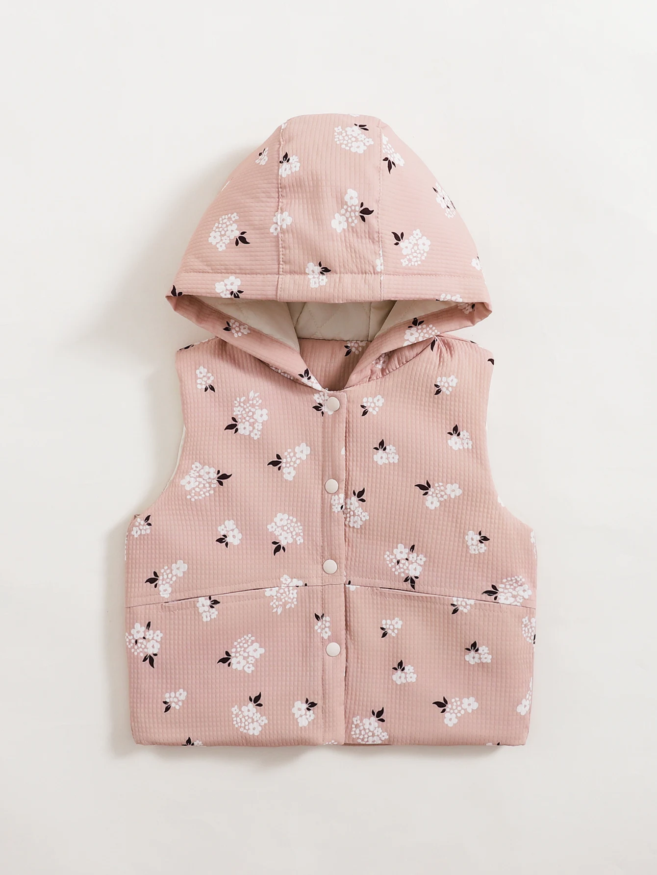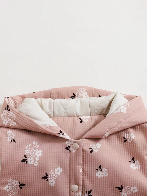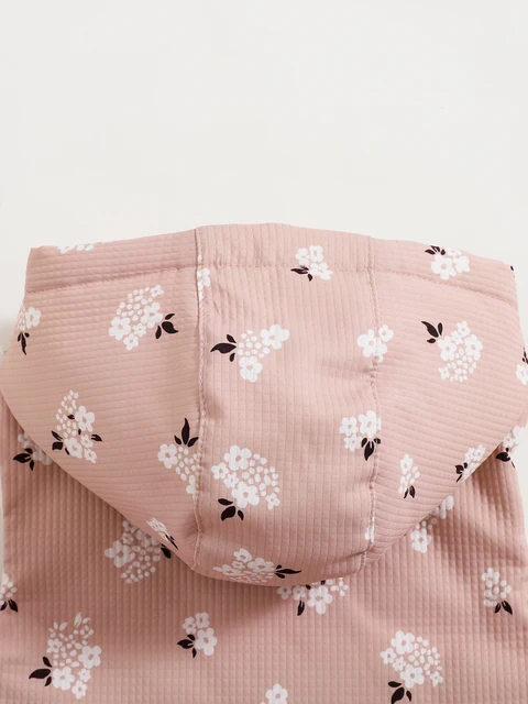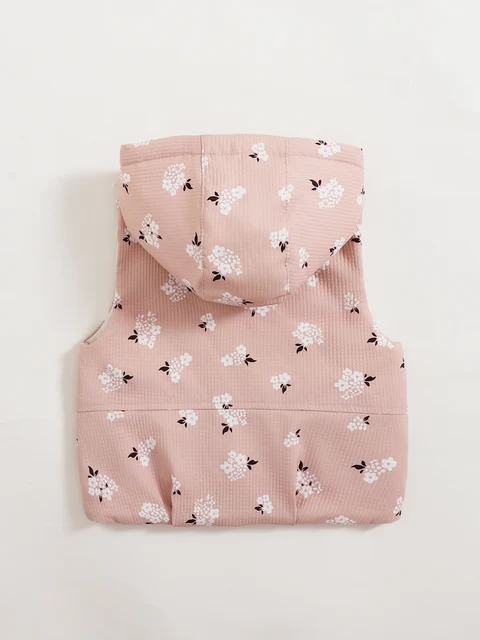 Girls’ Baby Floral Print Hooded Vest Coat Autumn and Winter Style Girls’ Leisure Button Vest