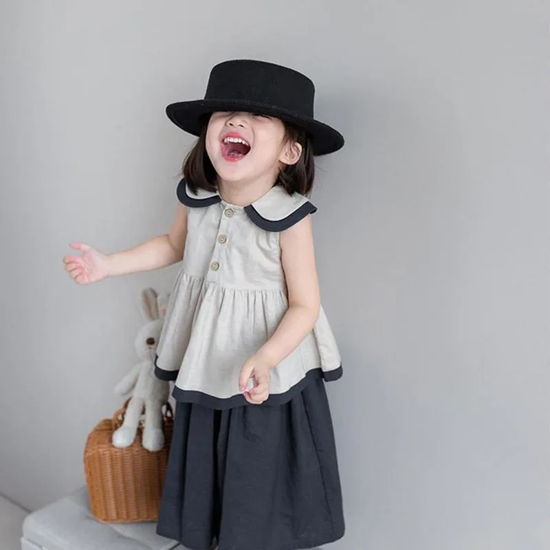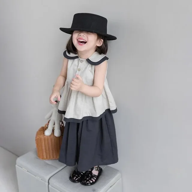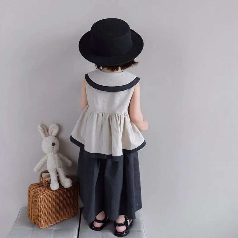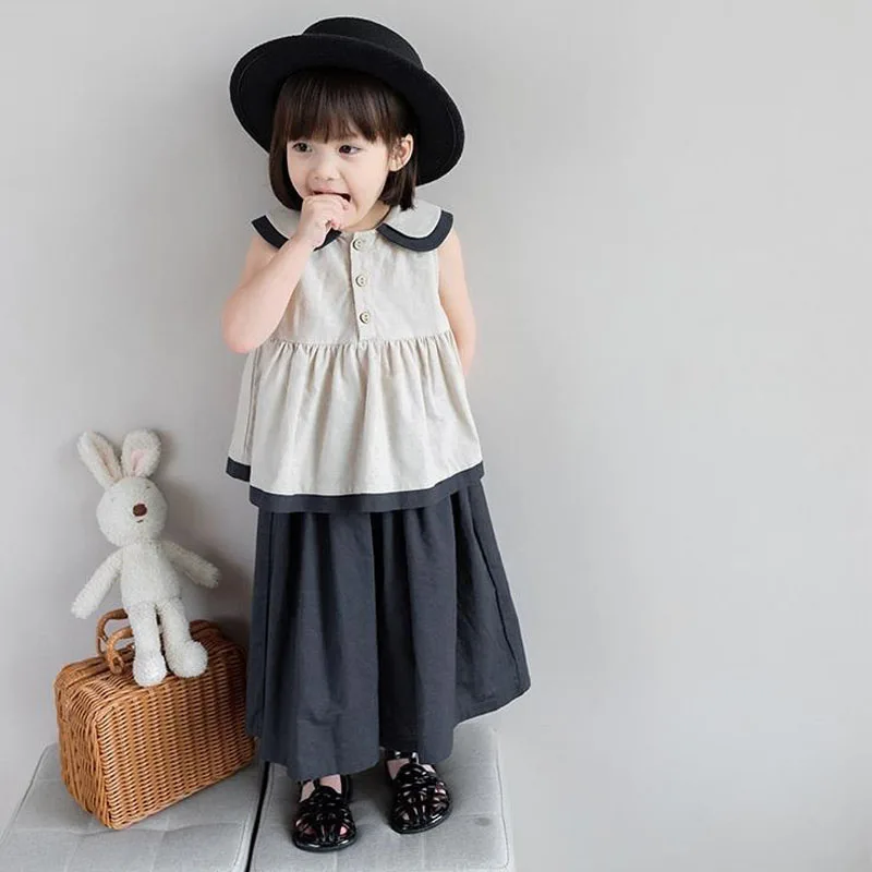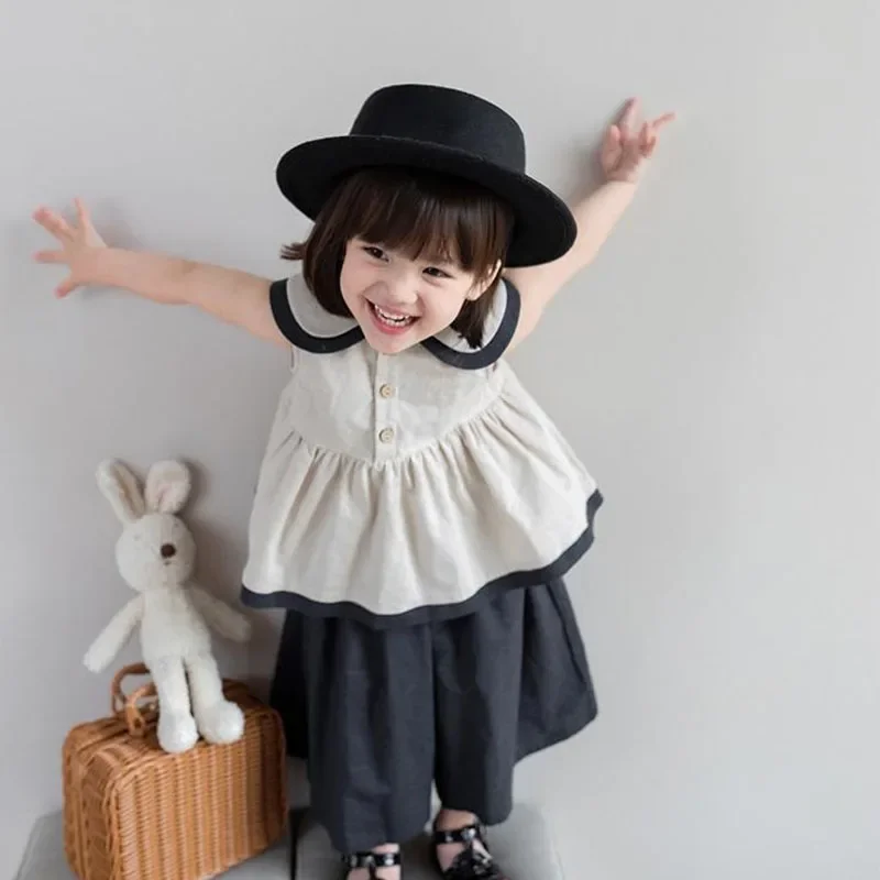 2PCS Blue Shirt Set for Kids Summer Long Trouser Vacation Children Clothing Set Casual Single Breasted Beach Wear Boys Top+Pants