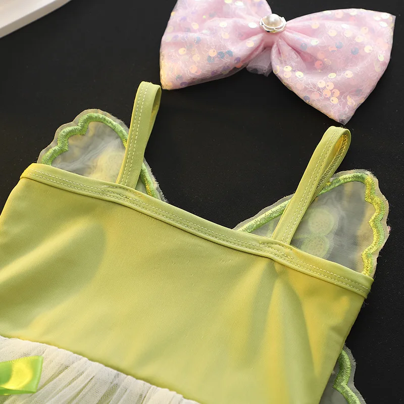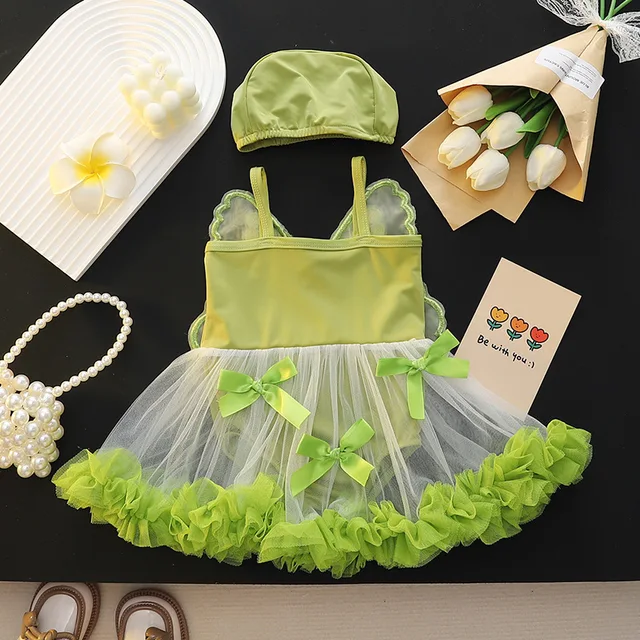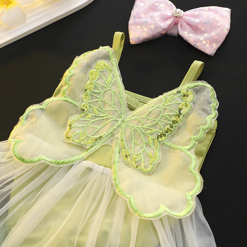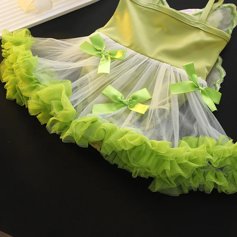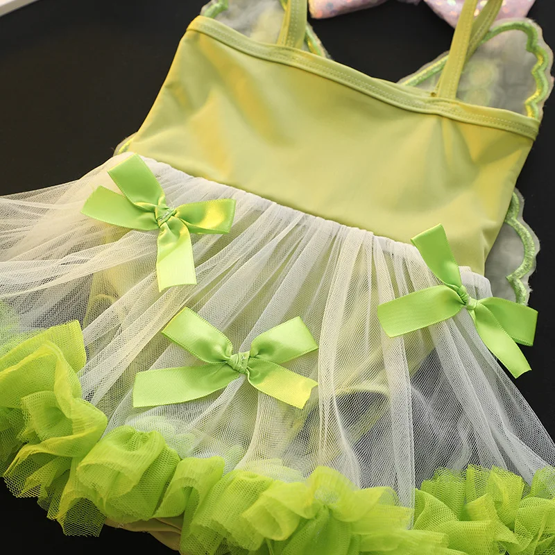 Girls Dress Swimwear Baby Bowknot Wings Swimming Clothes Kids Mesh One Piece Swimsuit Summer New Children Cute Fashion Beachwear
