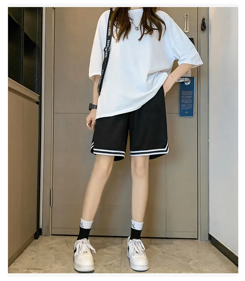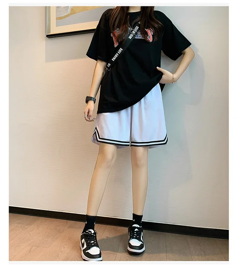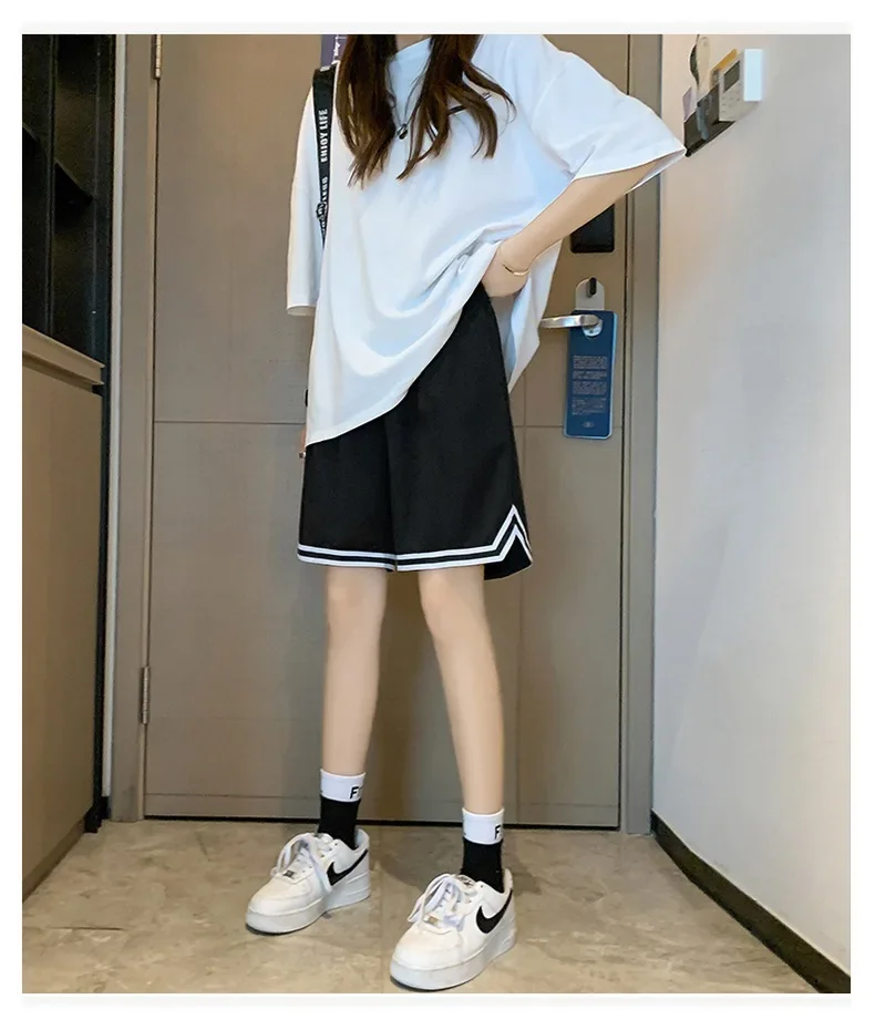 Girls Hong Kong Style Loose Five-Point Sports Shorts Thin Sports Casual Pants High School Students Running Large Size Shorts