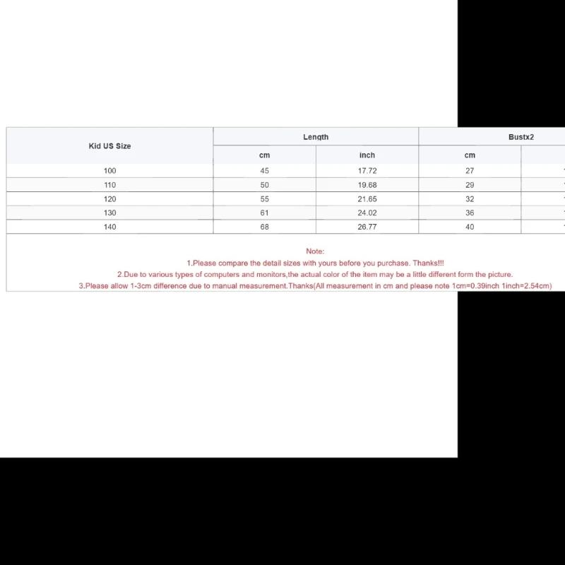 Kid US Size:110 Length:50cm(19.68inch) Bustx2:29.0cm(11.42inch)