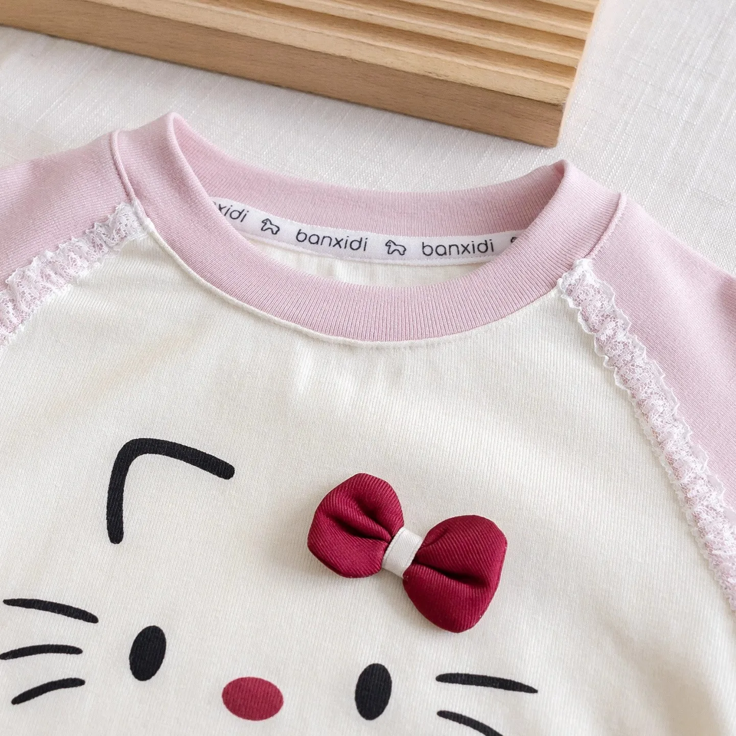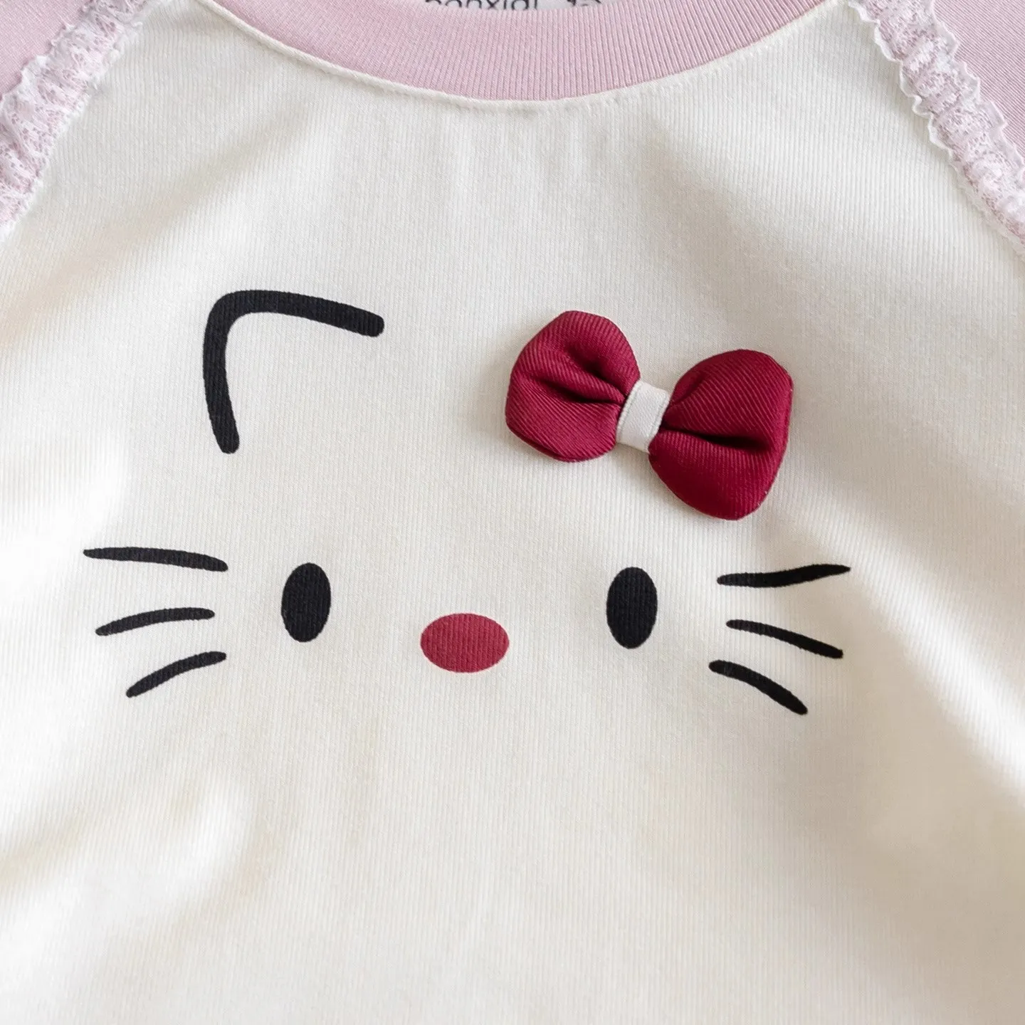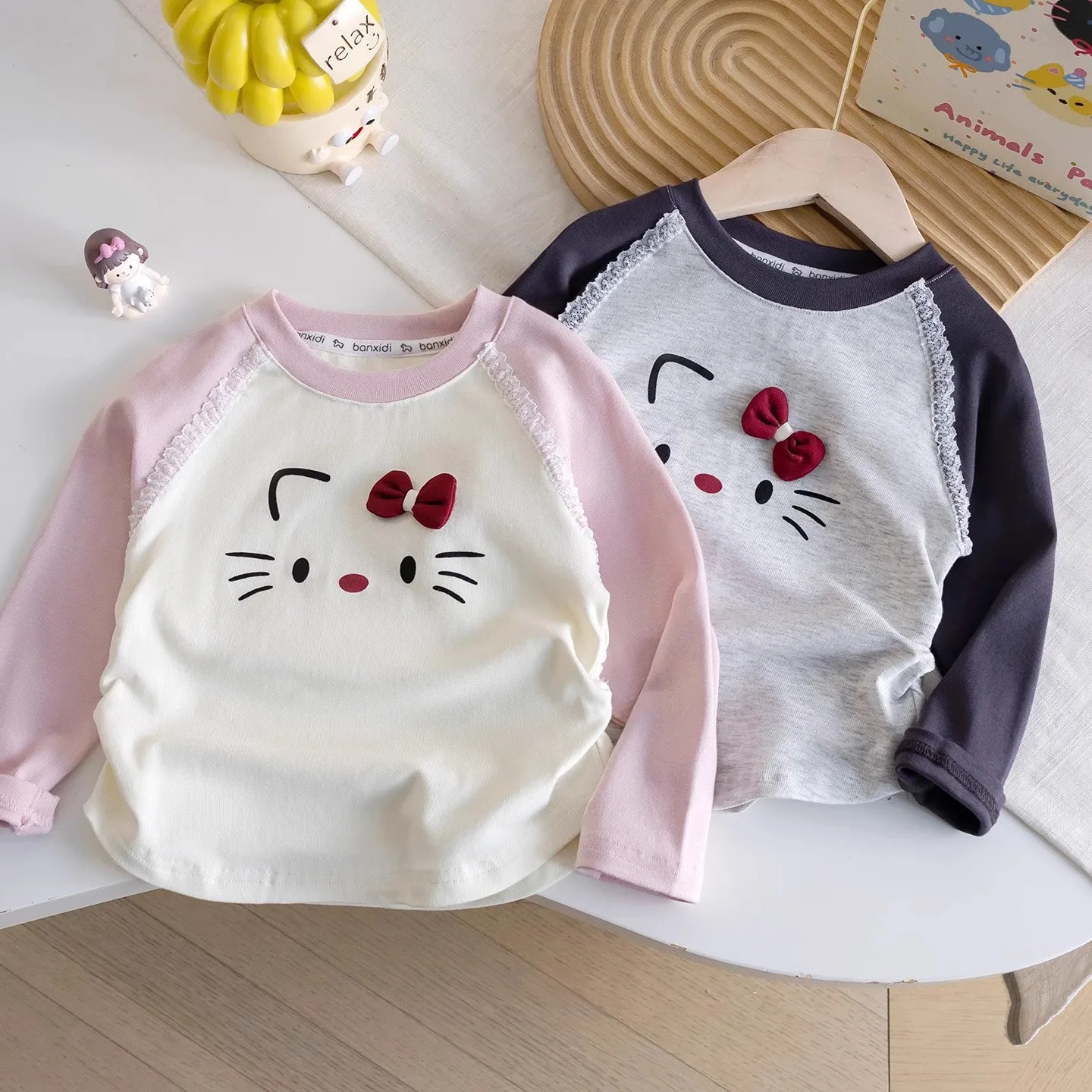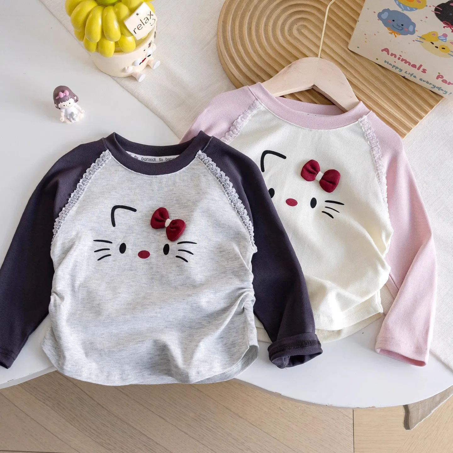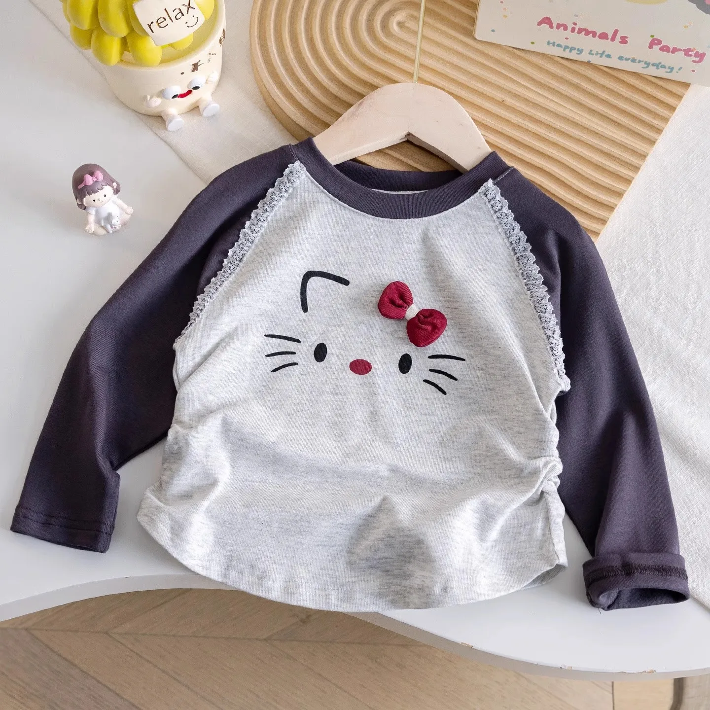 This girls’ top features a charming sweet cartoon kitten design, perfect for adding a touch of cuteness to any outfit.