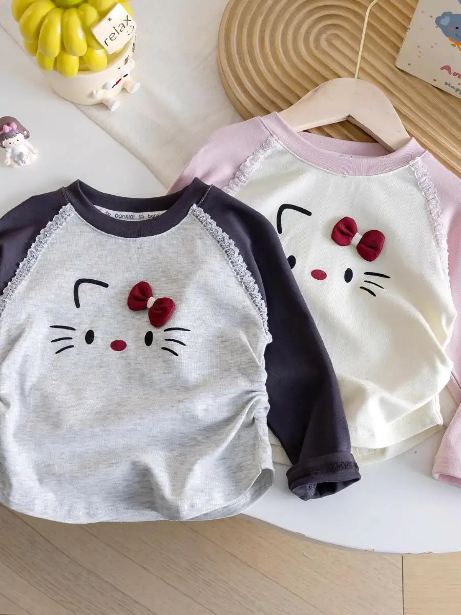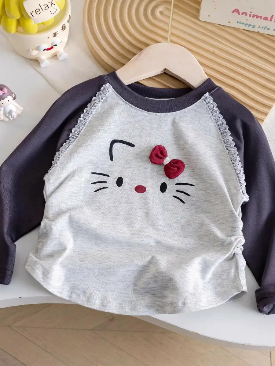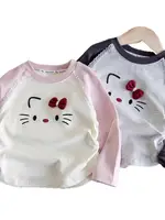 This girls’ top features a charming sweet cartoon kitten design, perfect for adding a touch of cuteness to any outfit.