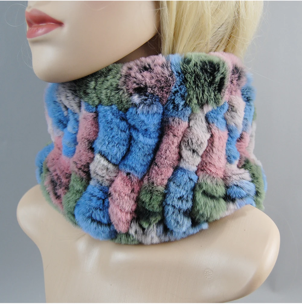Girls Natural Fur Ring Cowl Snood Scarves Winter Women Real Fur Handmade Stretch Fur Scarf Knit Genuine