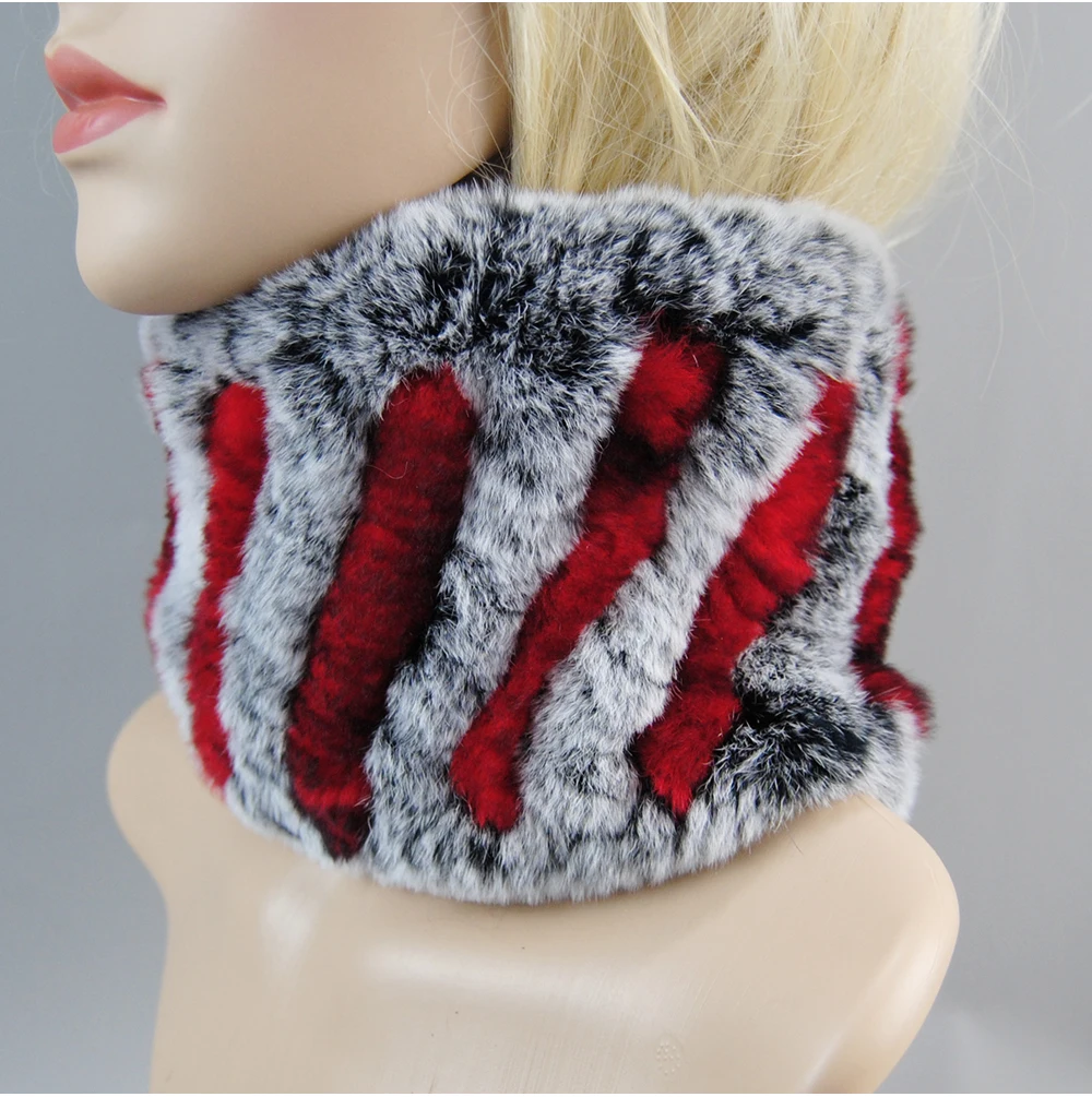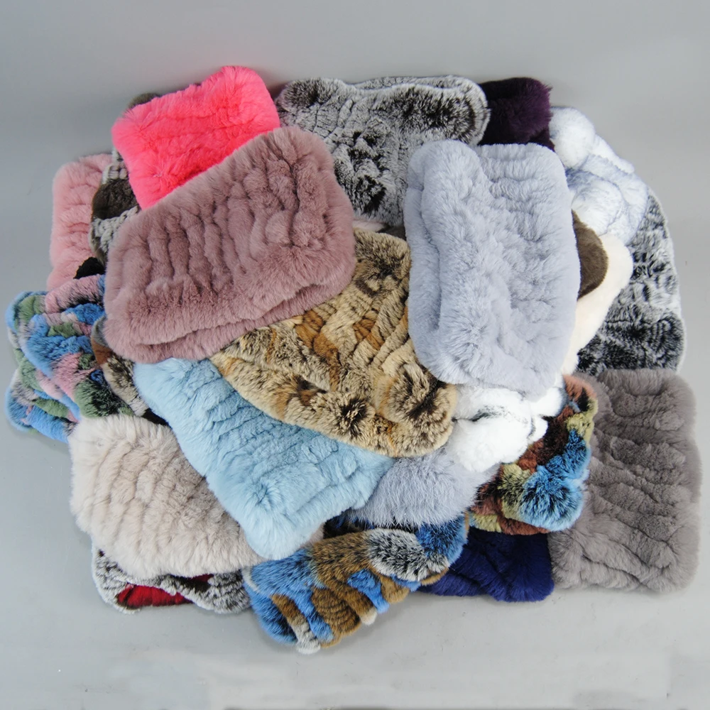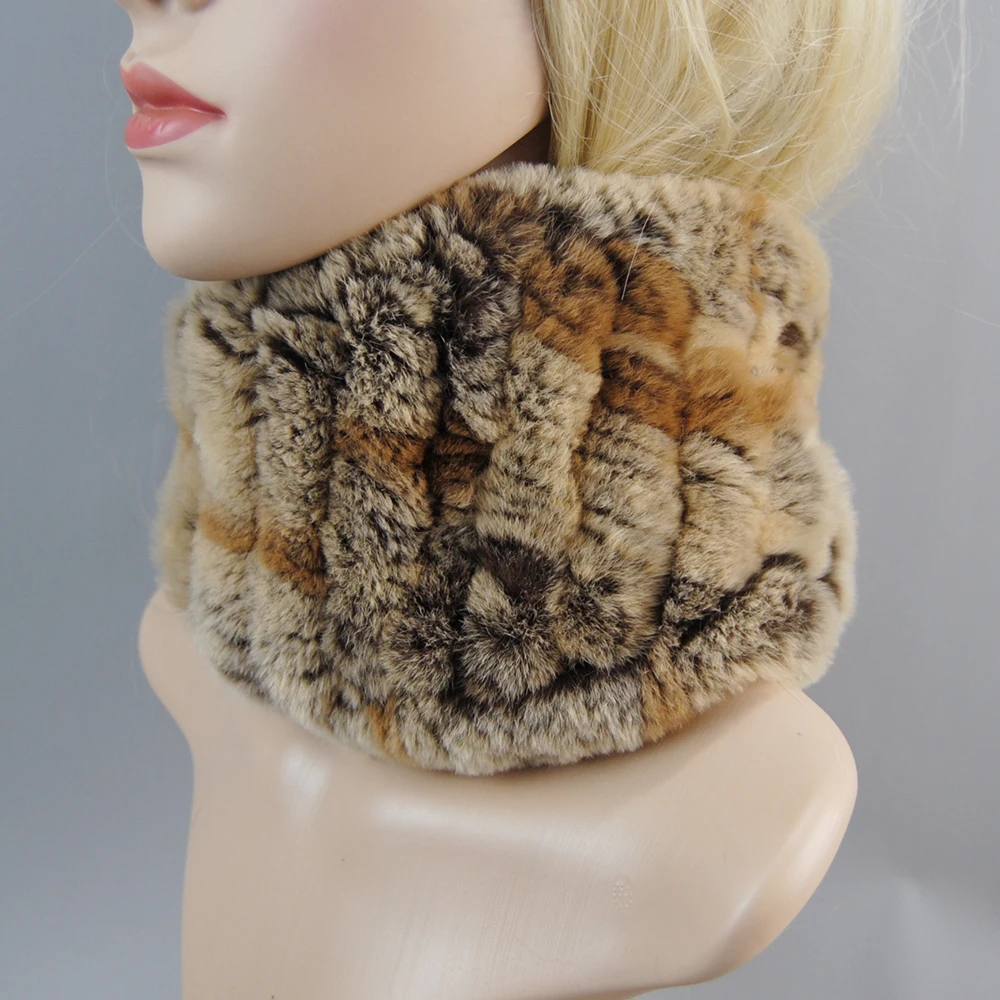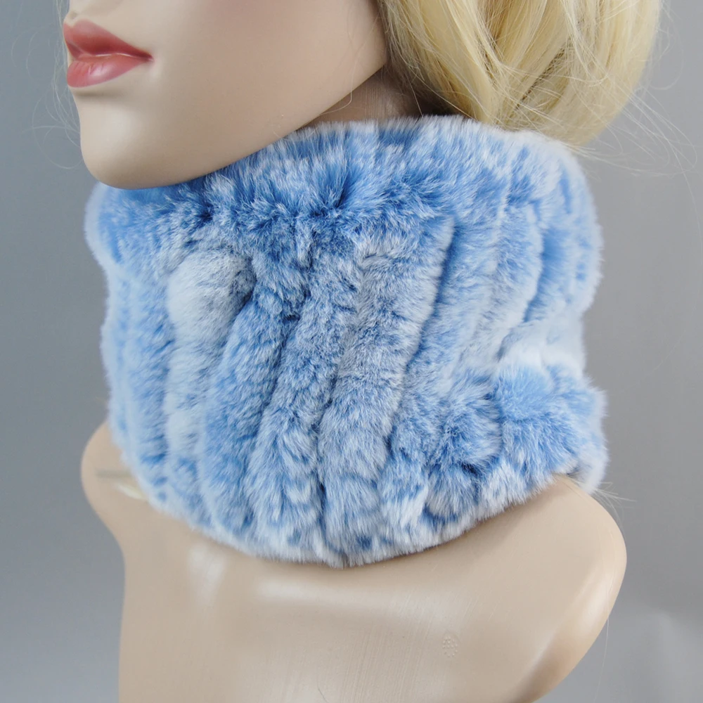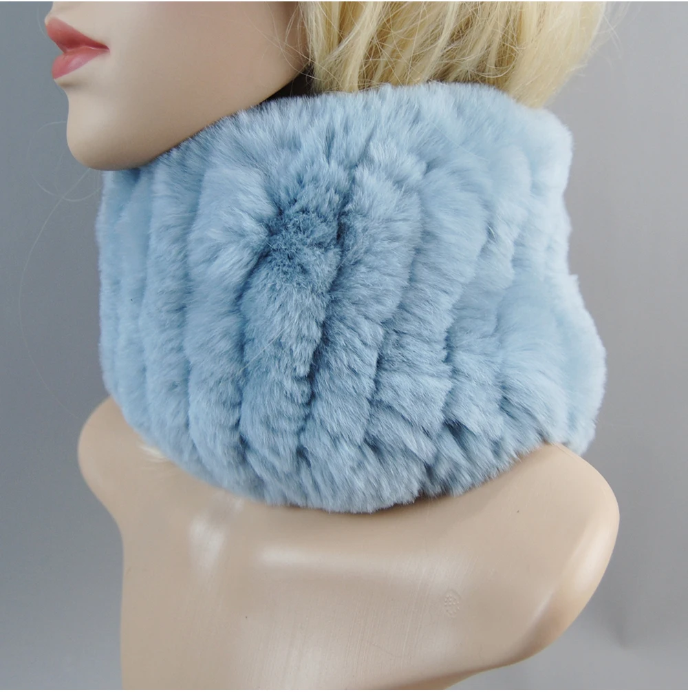 Girls Natural Fur Ring Cowl Snood Scarves Winter Women Real Fur Handmade Stretch Fur Scarf Knit Genuine Rex Rabbit Fur Headbands