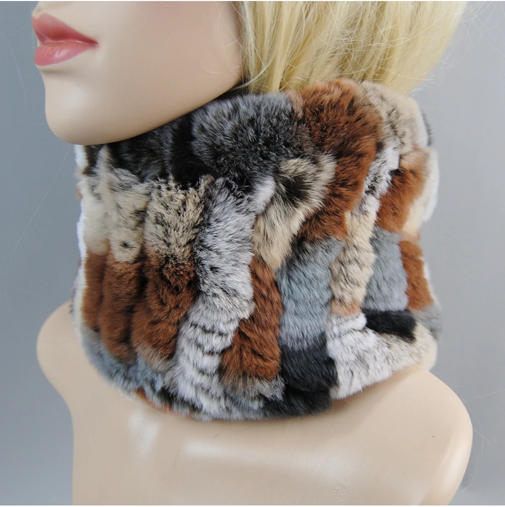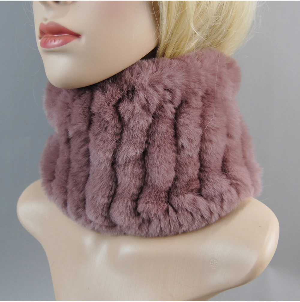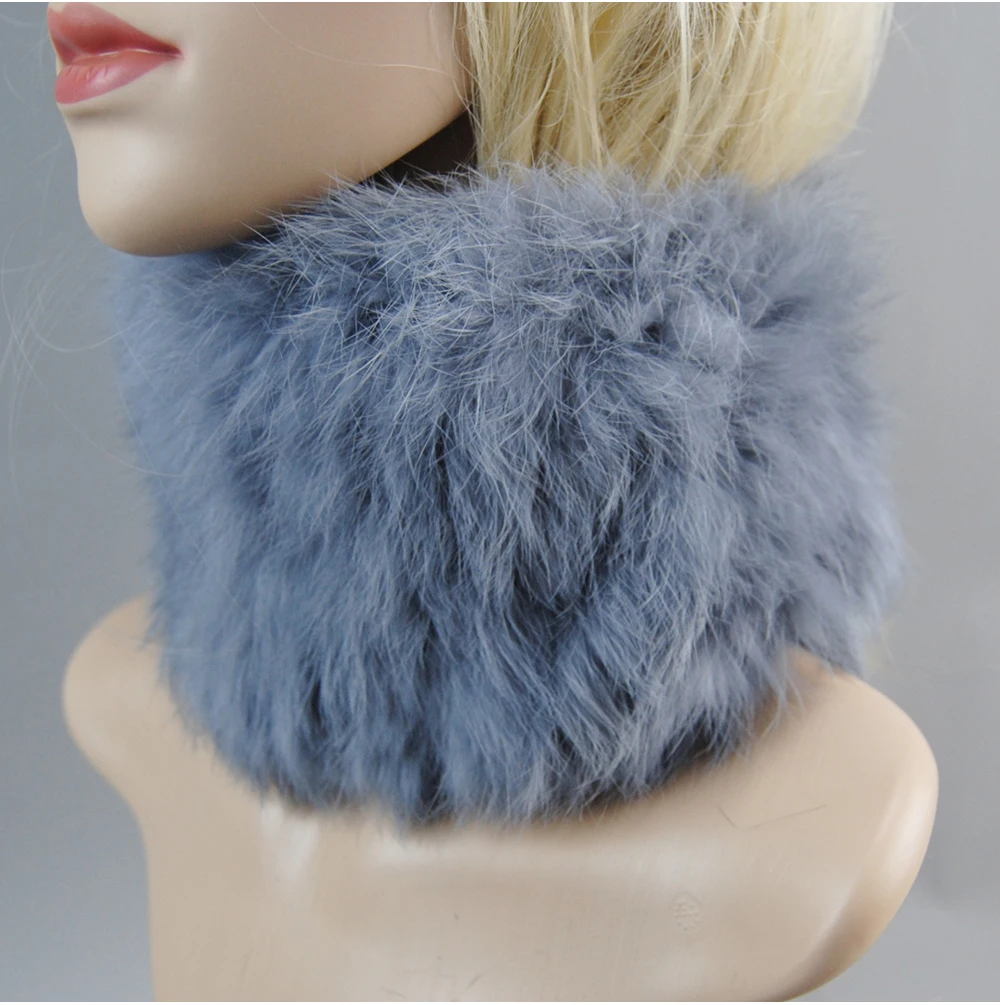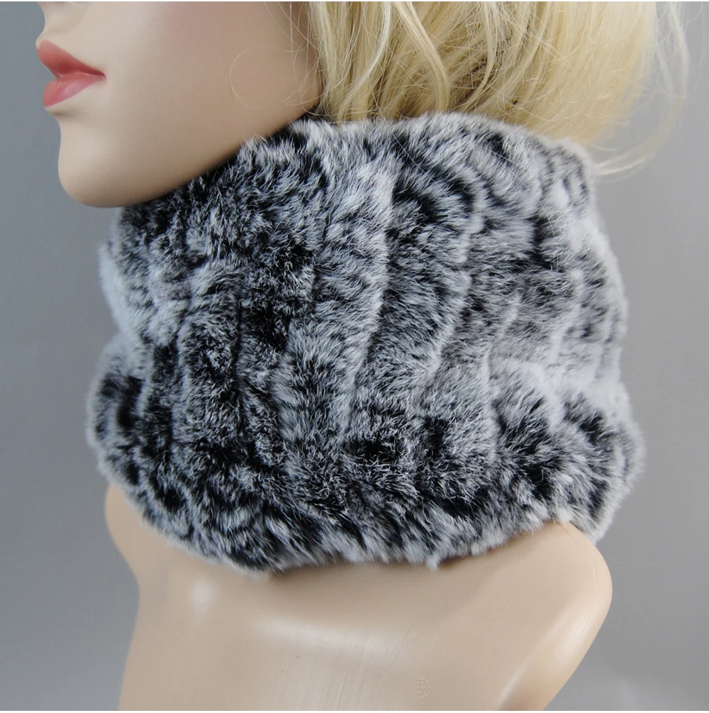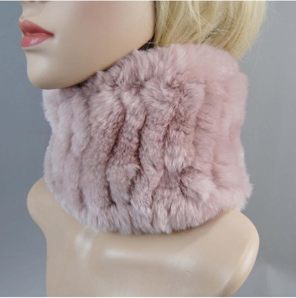 Girls Natural Fur Ring Cowl Snood Scarves Winter Women Real Fur Handmade Stretch Fur Scarf Knit Genuine Rex Rabbit Fur Headbands
