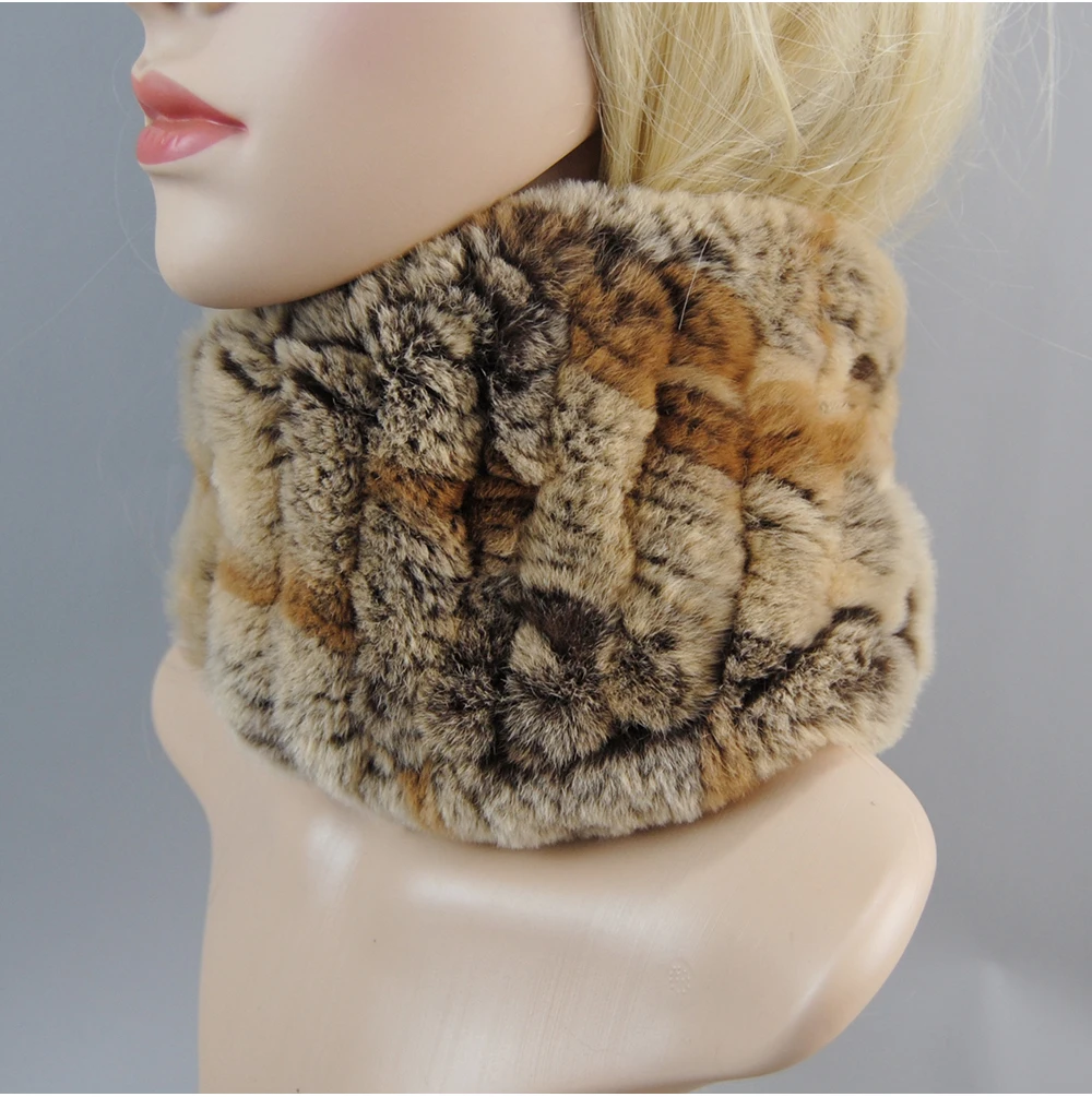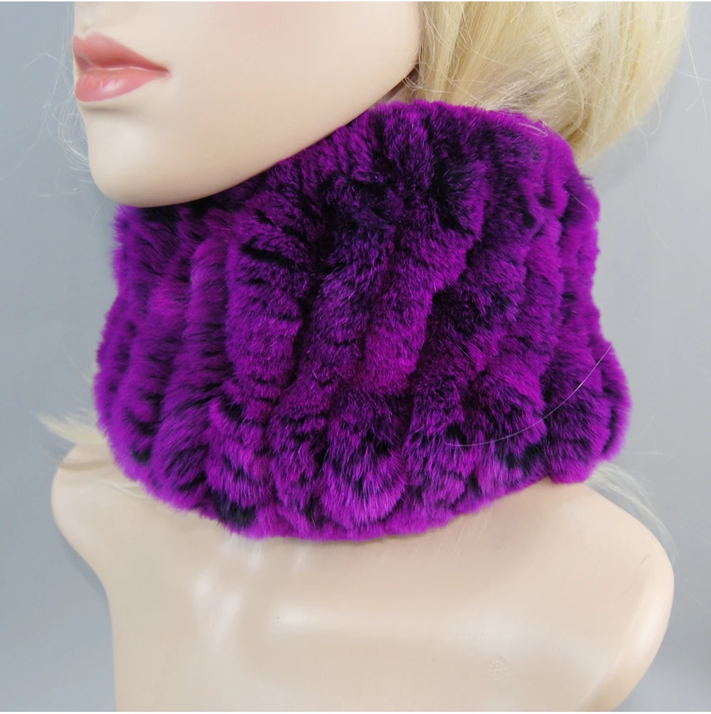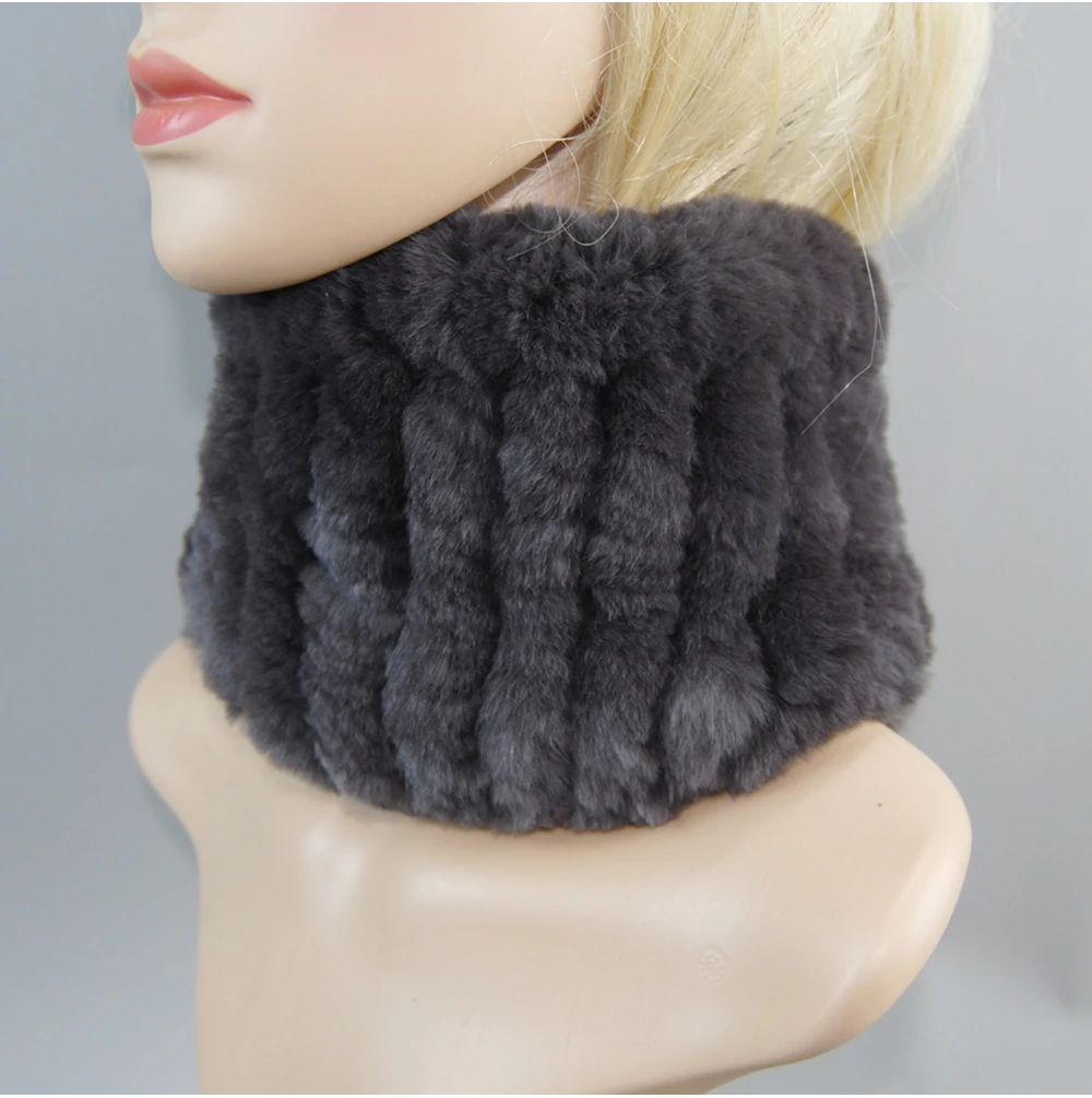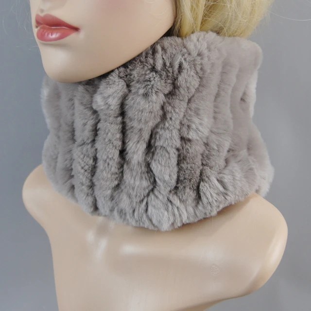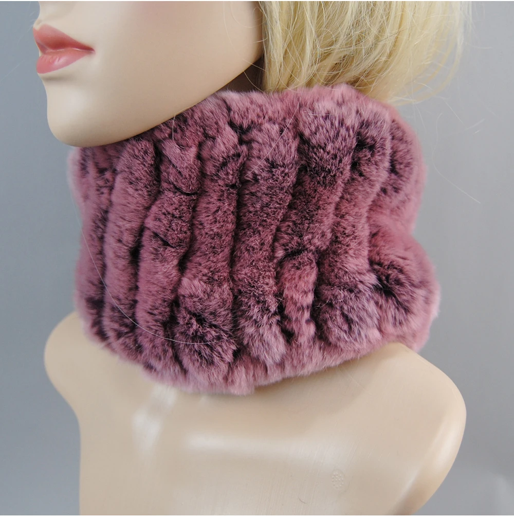 Girls Natural Fur Ring Cowl Snood Scarves Winter Women Real Fur Handmade Stretch Fur Scarf Knit Genuine Rex Rabbit Fur Headbands
