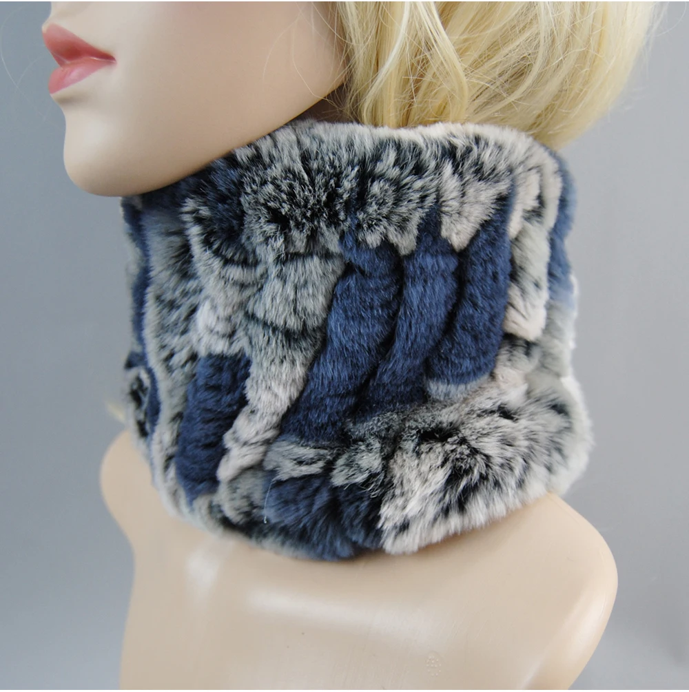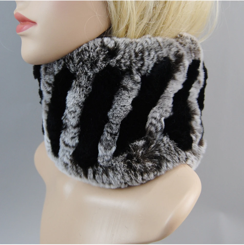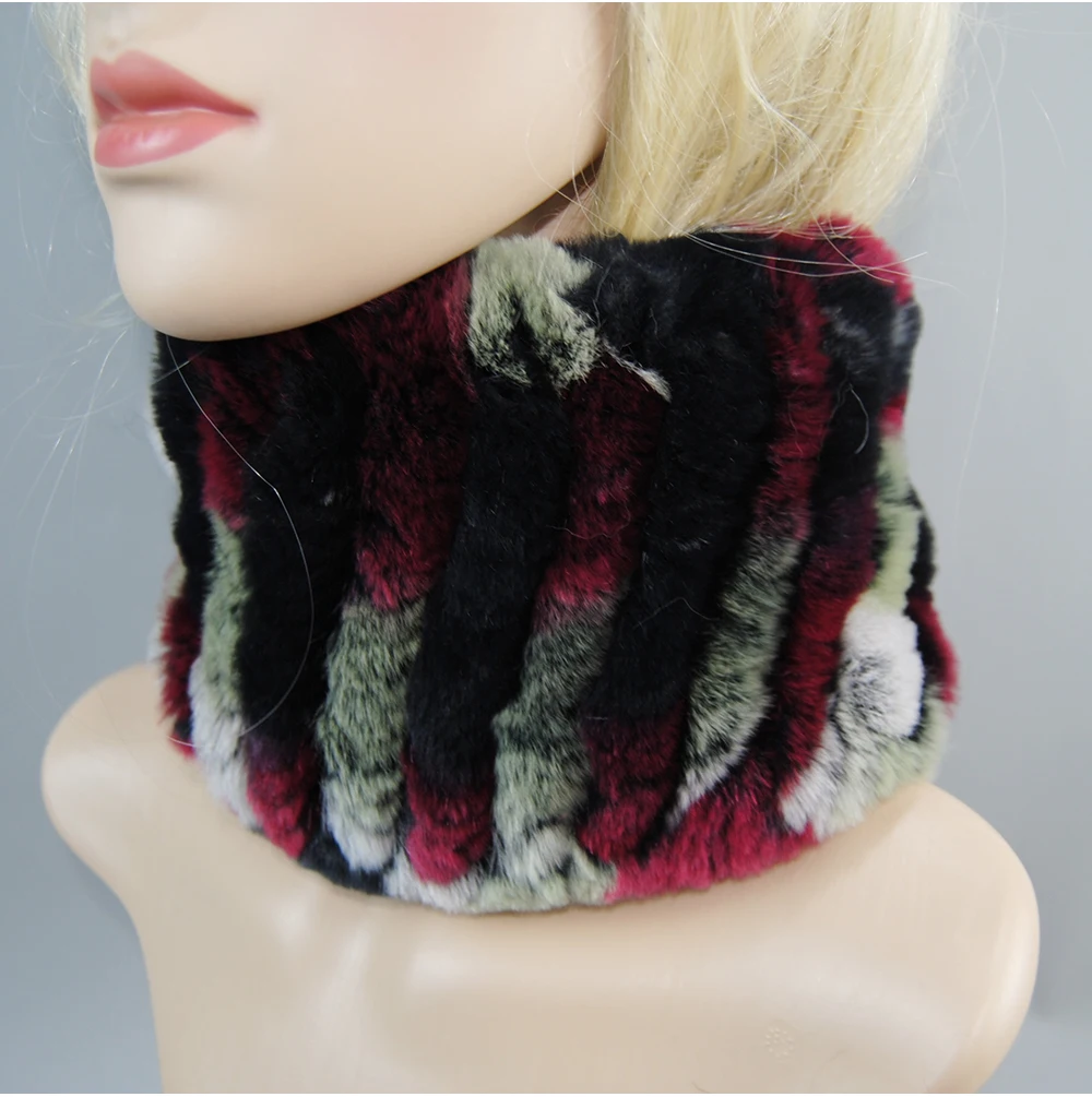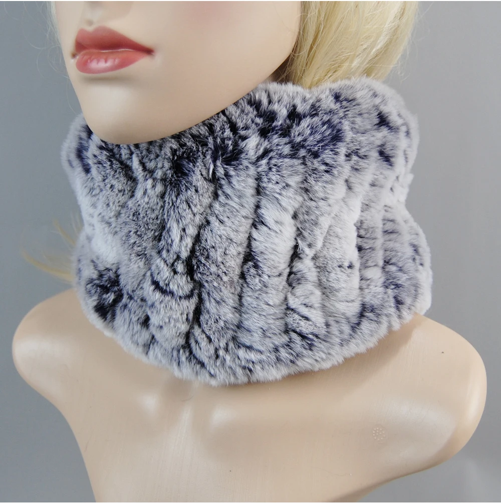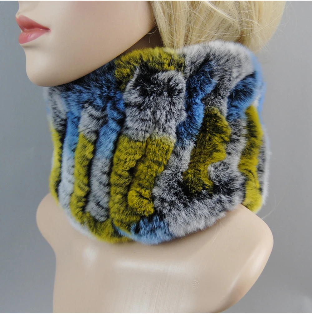 Girls Natural Fur Ring Cowl Snood Scarves Winter Women Real Fur Handmade Stretch Fur Scarf Knit Genuine Rex Rabbit Fur Headbands
