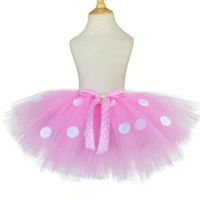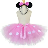 Girls Pink Mickey Tutu Skirts Baby Ballet Tulle Pettiskirts with White Polka Dots and Hairbow Kids Cosplay Party Costume Skirts