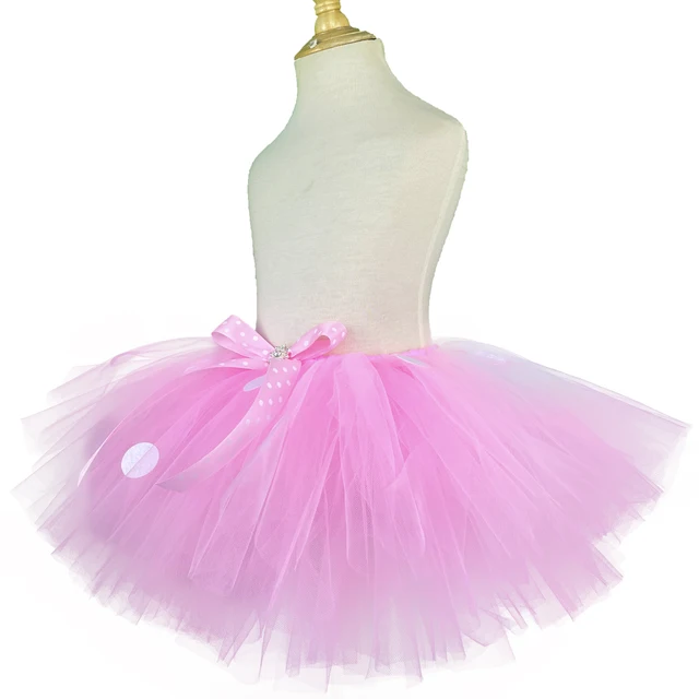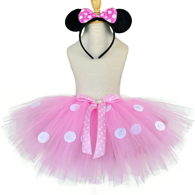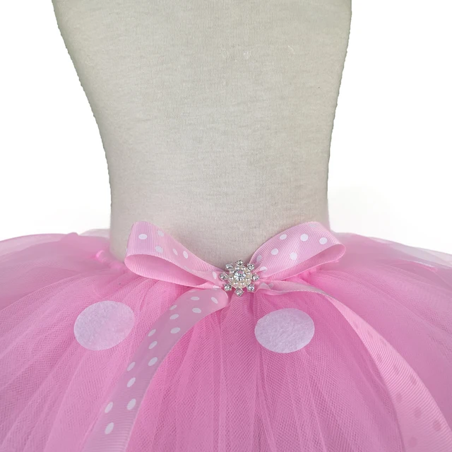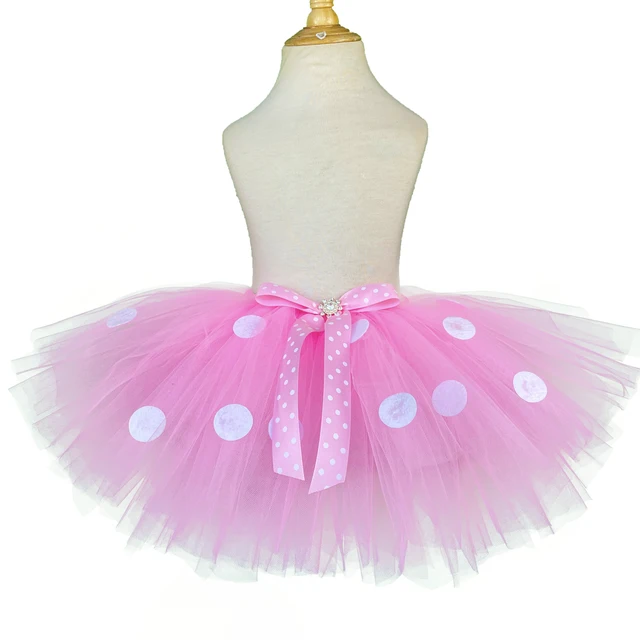Girls Pink Mickey Tutu Skirts Baby Ballet Tulle Pettiskirts with White Polka Dots and Hairbow Kids Cosplay