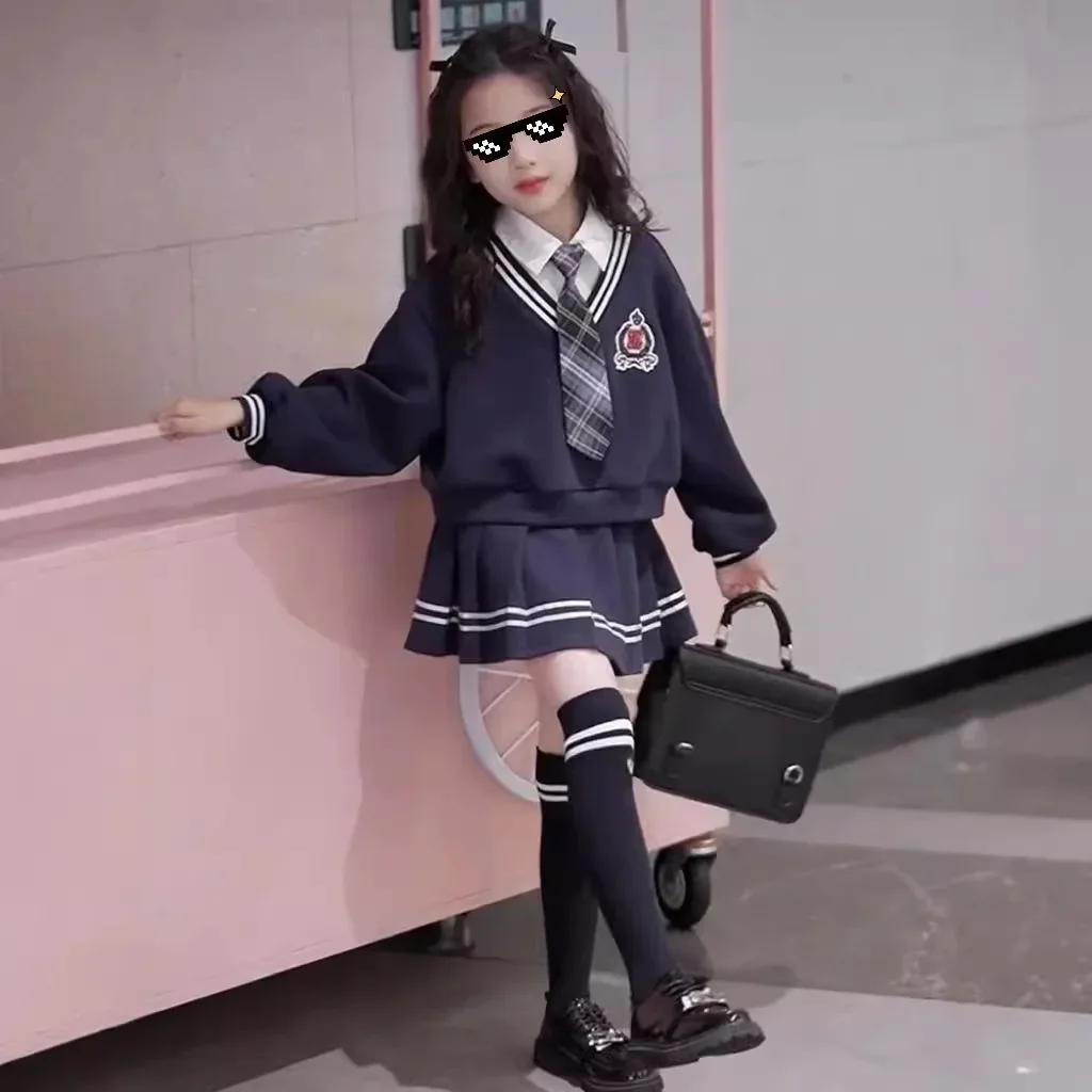 Girls’ Preppy Style JK Skirt Set Spring Autumn Fashionable Children’s College Wind Clothing