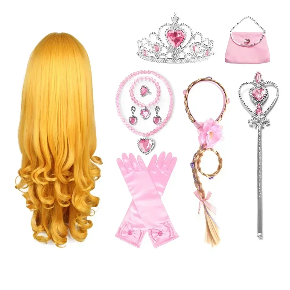 Girls Princess Cosplay Wig Kids Xmas Halloween Carnival Party Elsa Ariel Aurora Anna Dress Up Accessories