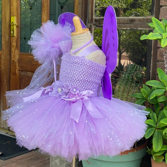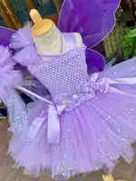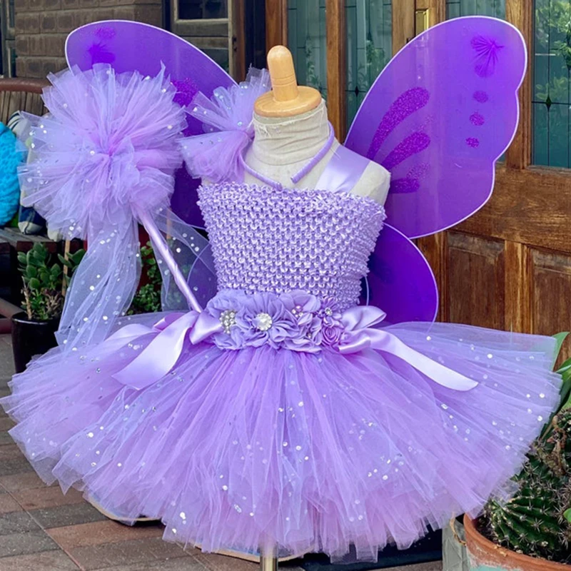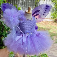 Hot Girls Purple Flower Fairy Dress Kids Fluffy Tulle Dress Children Birthday Wedding Halloween Cosplay Party Christmas Tutus