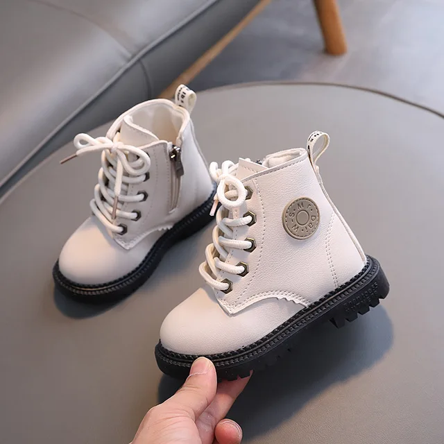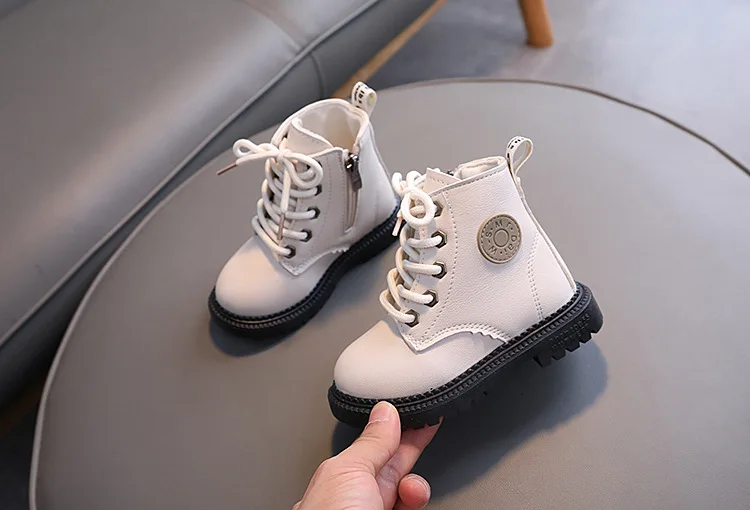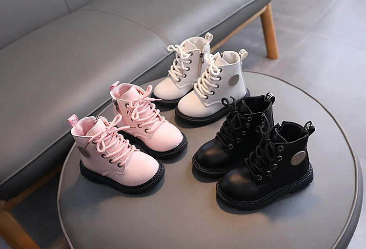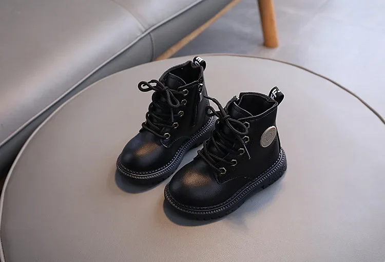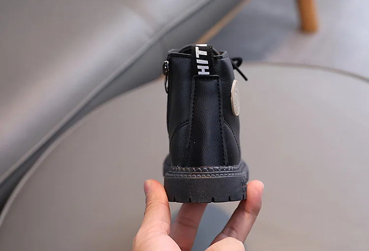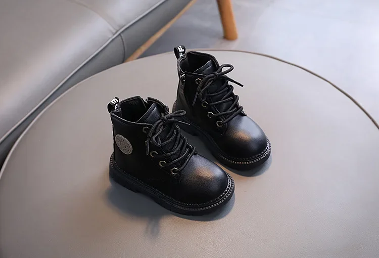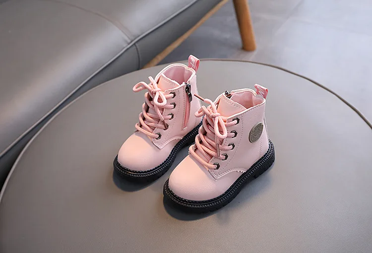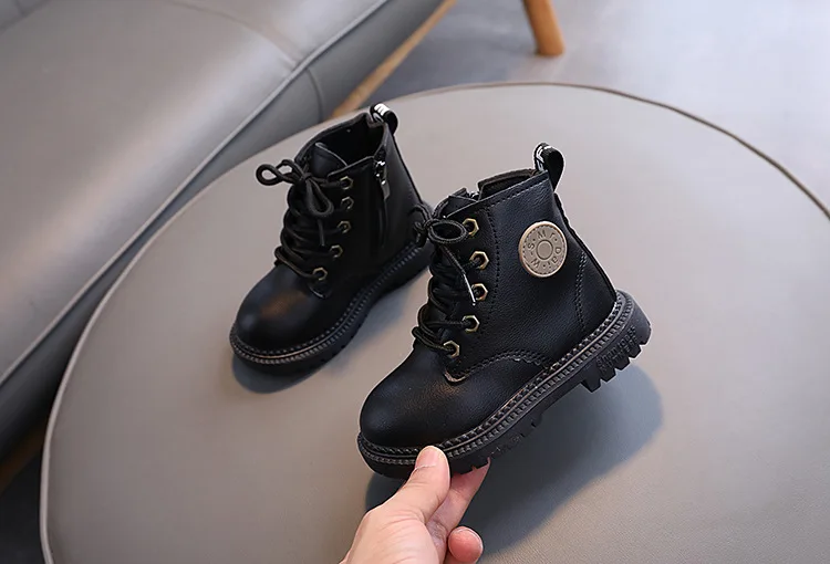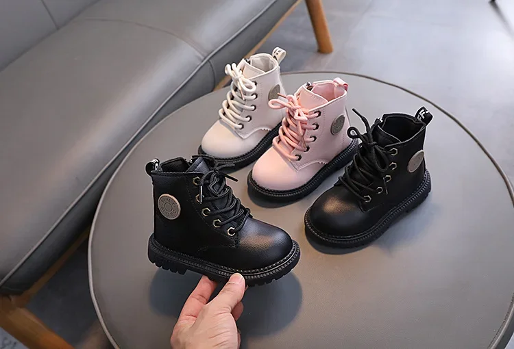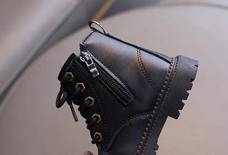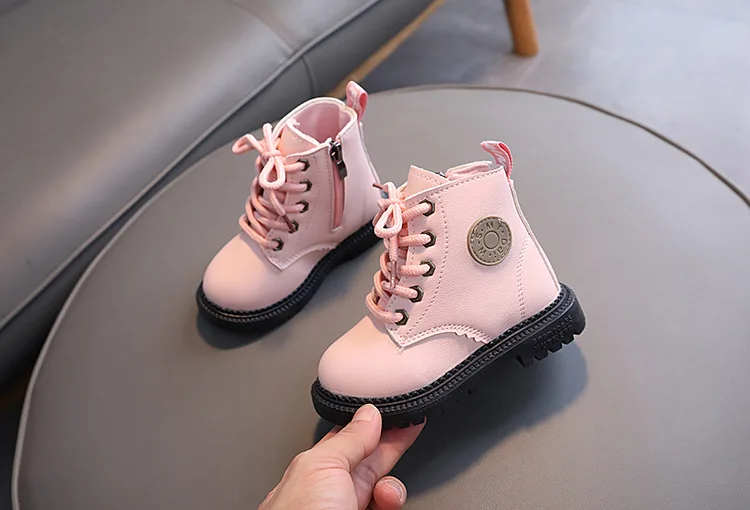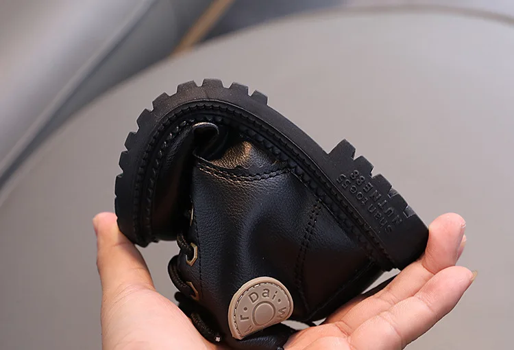 2025 Little Girls Snow Boots Solid Black Pink Brown Gray Boys Ankle Boots Warm Suede Leather Flat with Casual Kids Shoes I07082