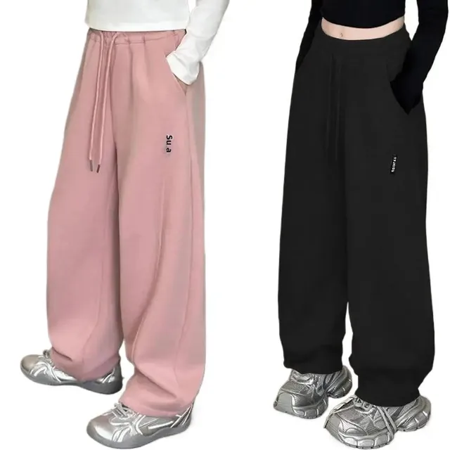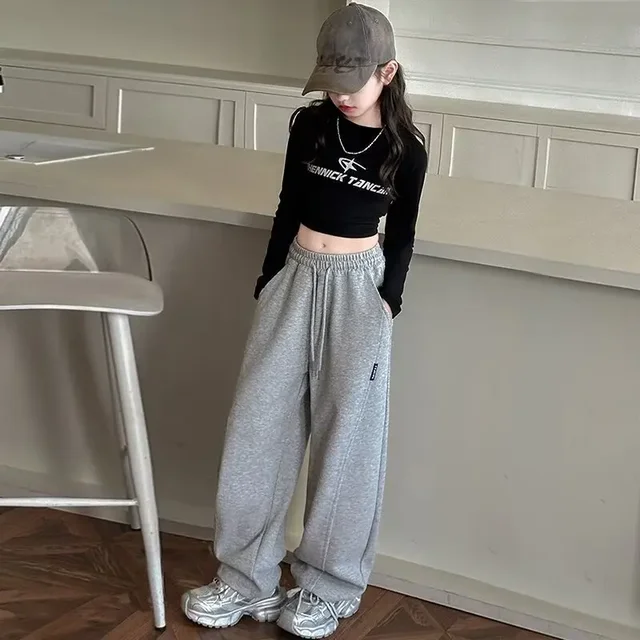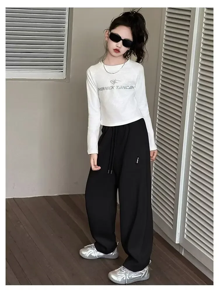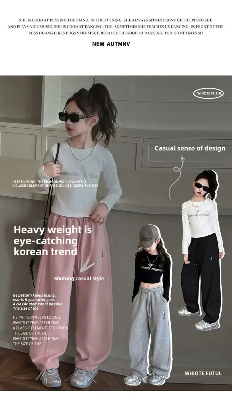 Girls Wide Leg Pants Autumn New Style Children’s Casual Sports Banana Trousers for Big Kids Spring