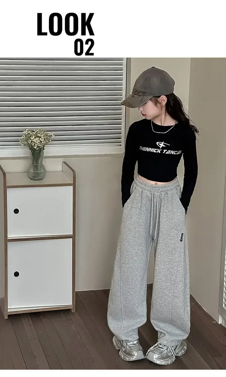 • Western Style Design : These girls’ sweatpants feature a trendy Western style, perfect for the autumn season. Their wide-leg cut offers comfort and a stylish look.