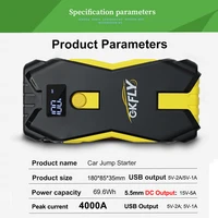 GKFLY 3000A/4000A Car Jump Starter Portable 12V Petrol Diesel Starting Device Cables Portable Power Bank