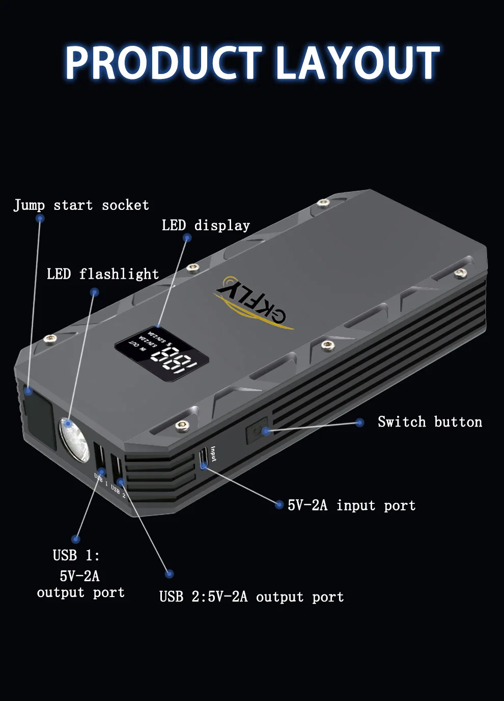 GKFLY Car Jump Starter 3000/5000/9000A 12V Starting Device Power Bank Car Battery Booster Charger For Petrol Diesel Car Starter