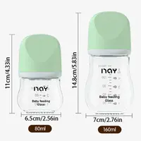 Glass Baby Bottle Anti-flatulence Anti Choking Newborn Feeding Bottle Silicone Nipple 80/160ML Wide-Caliber