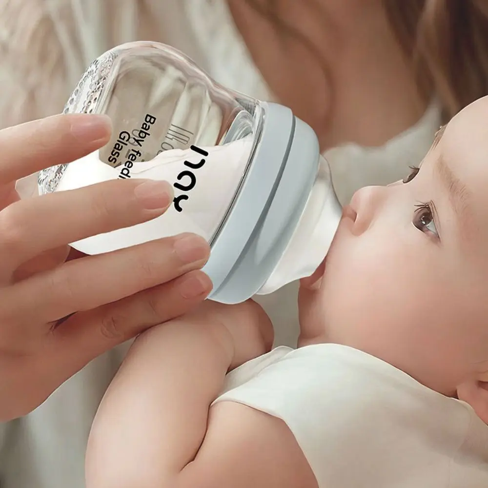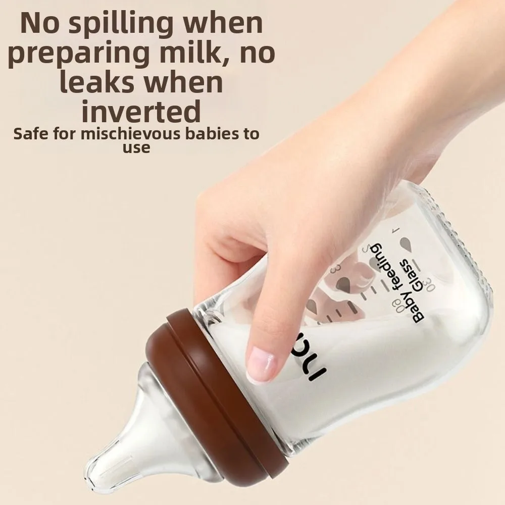 Glass Baby Bottle Anti-flatulence Anti Choking Newborn Feeding Bottle Silicone Nipple 80/160ML Wide-Caliber Milk Bottle Toddler