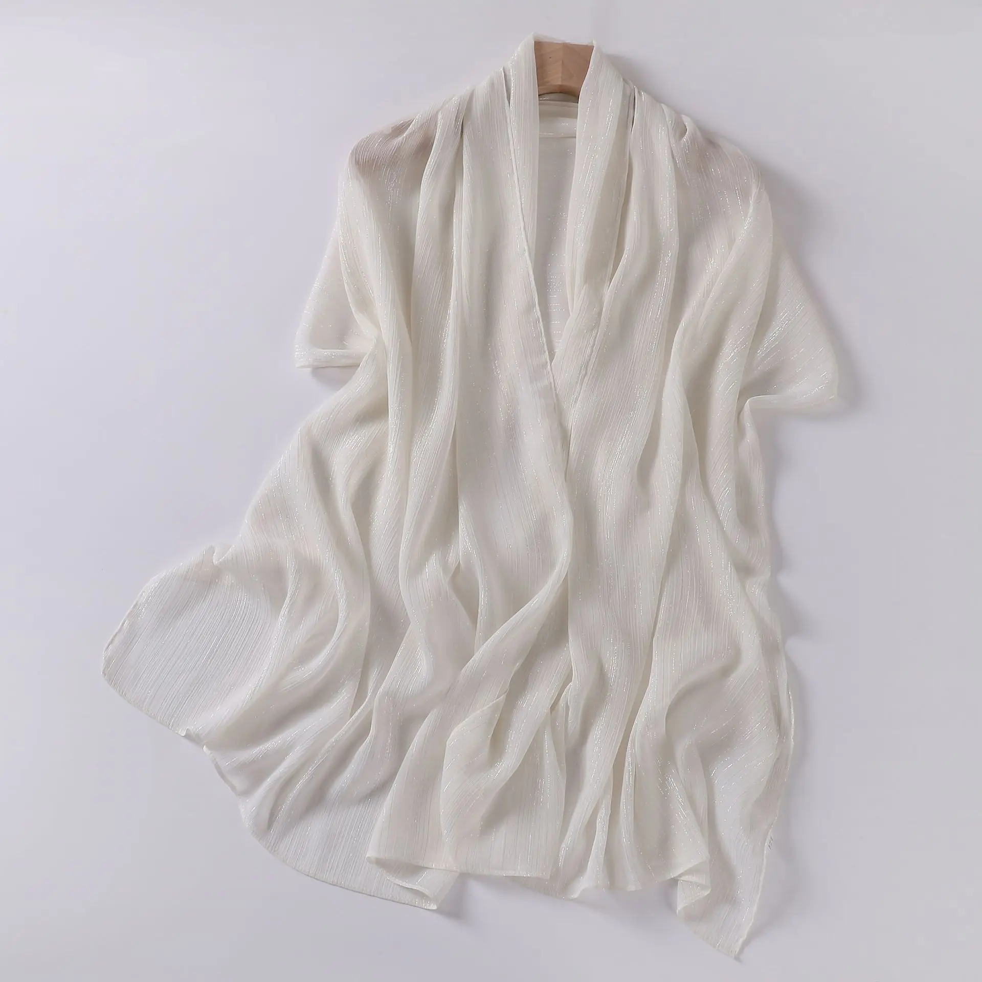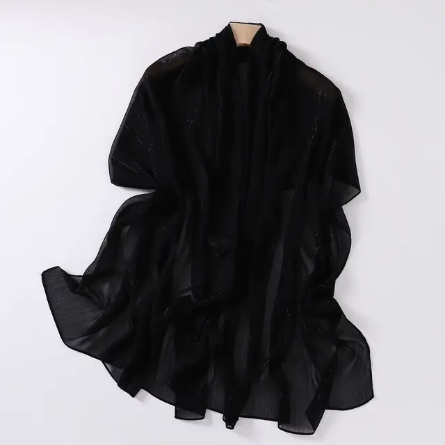 Glitter Shimmer Muslim Hijabs Fashion Solid Bubble Chiffon Scarf High Quality Shawl Scarves Silver Woman