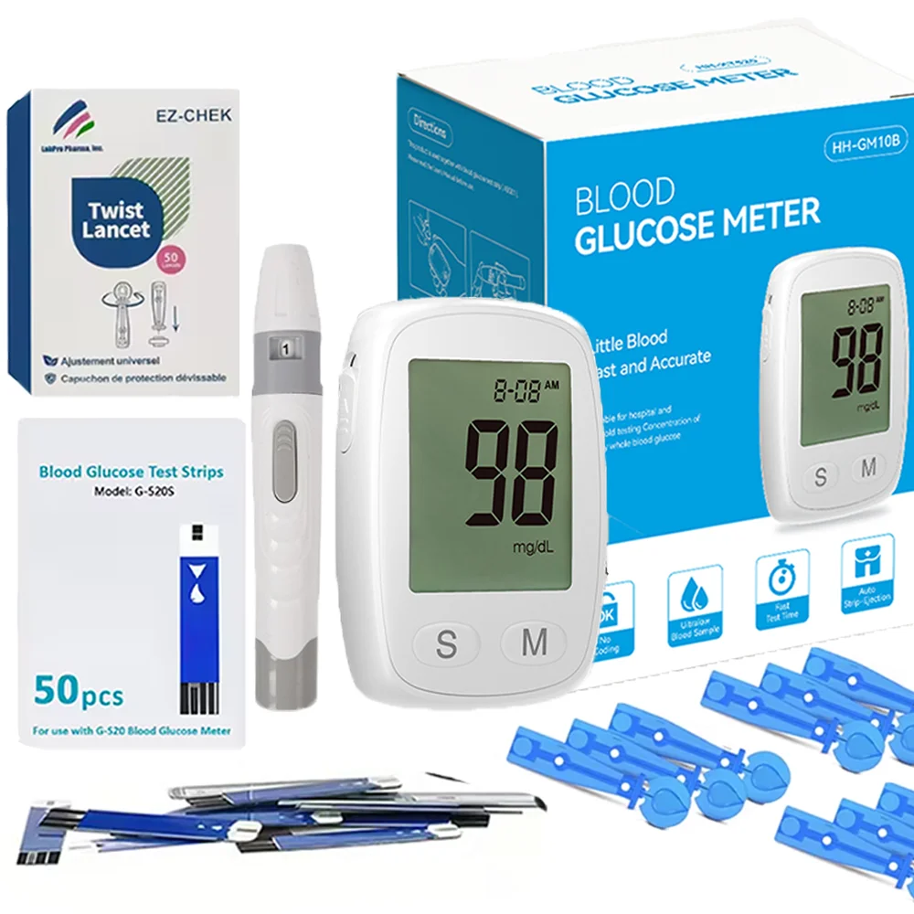50pcs set with meter: 1 Meter(mg/dL & mmol/L) + 1 Lancing device + 50 Test Srips + 50 Lancets