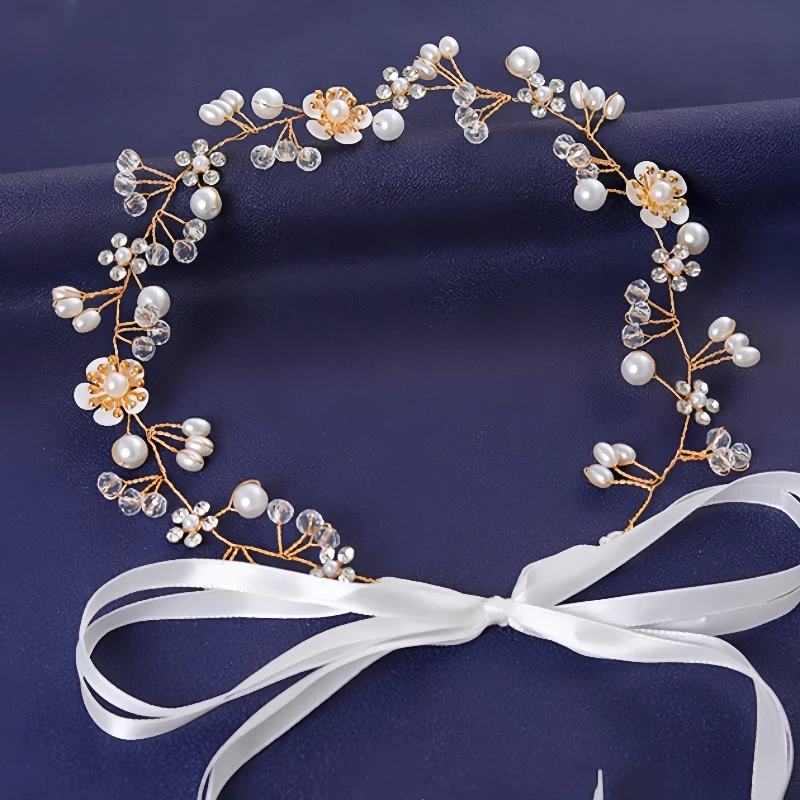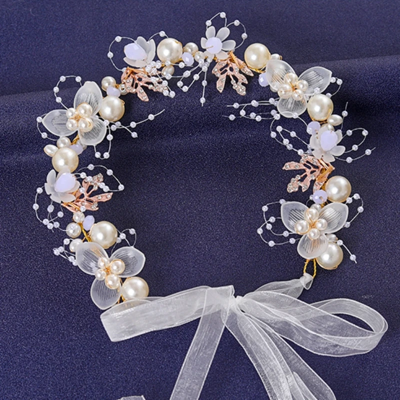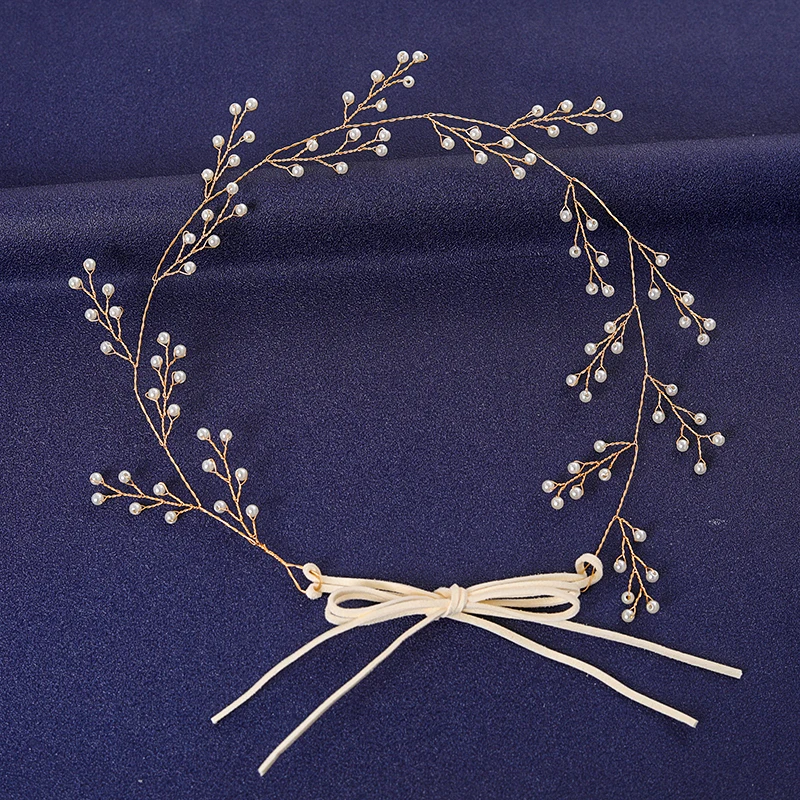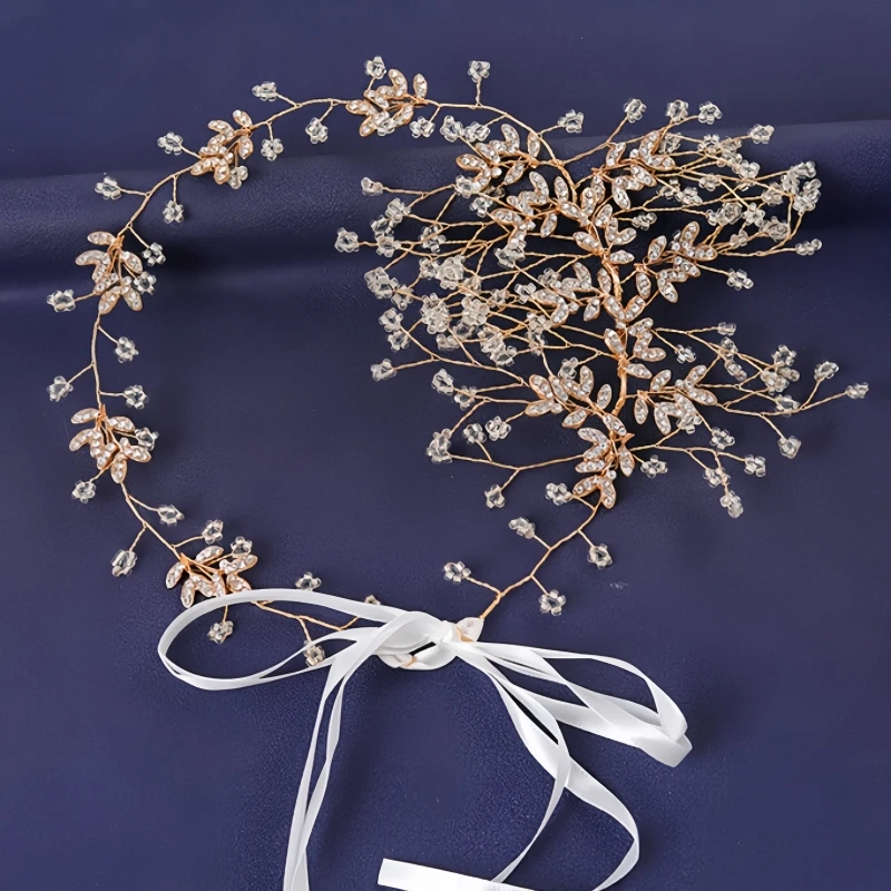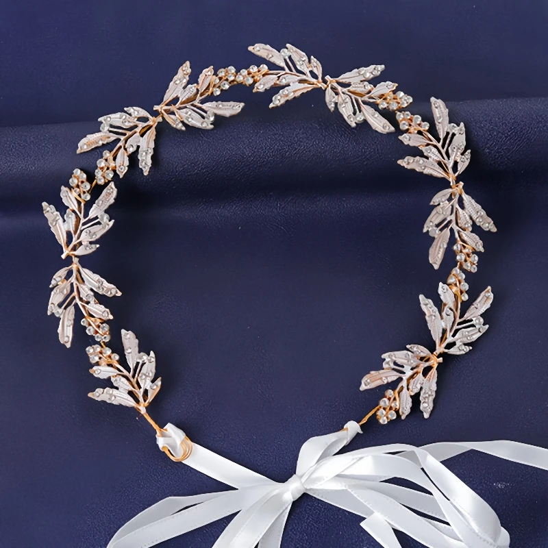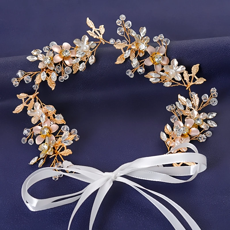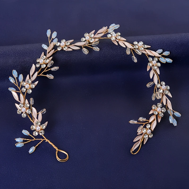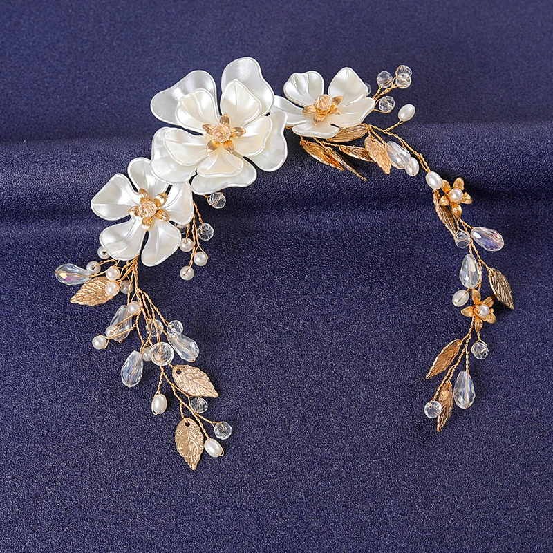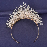 Gold Color Flower Leaf Hairband Tiara For Women Party Crystal Pearl Headband Bridal Wedding Hair Accessories