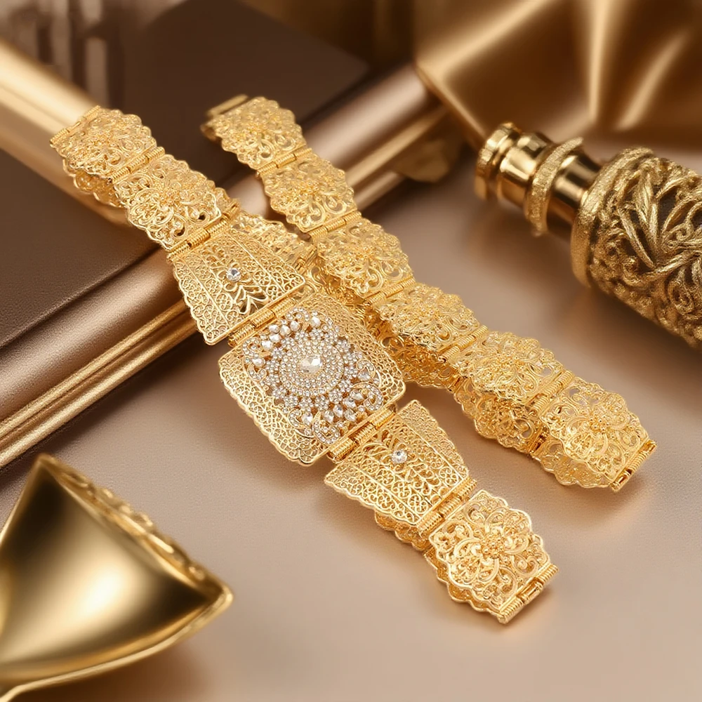 Gold Plated Moroccan Women’s Waist Belt Arabic Design Chain Jewelry for Wedding Festival Custom Costume Accessories