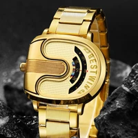 Gold Top Brand Luxury Men Watches Unique Design Stainless Steel Band Golden Dropship relogio masculino