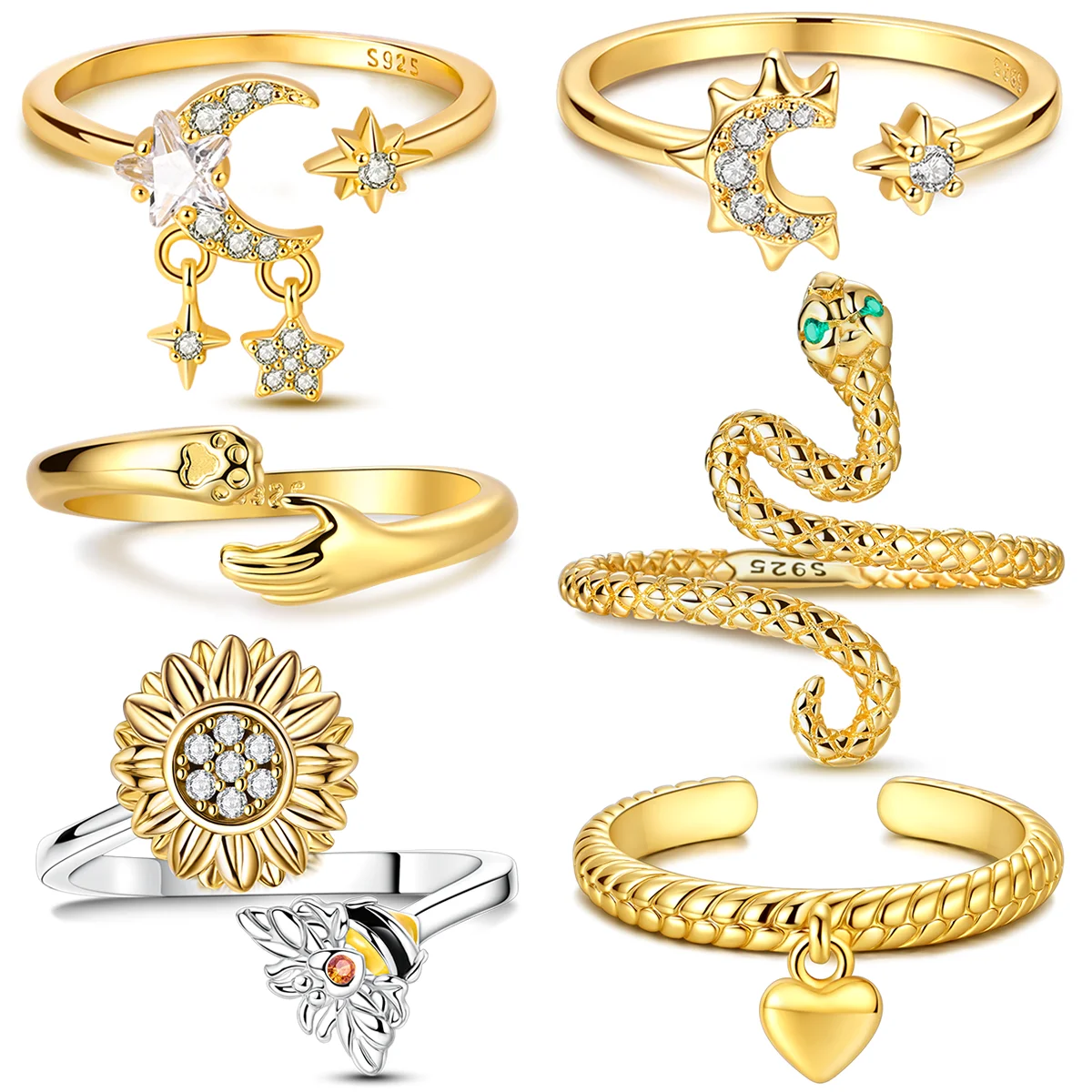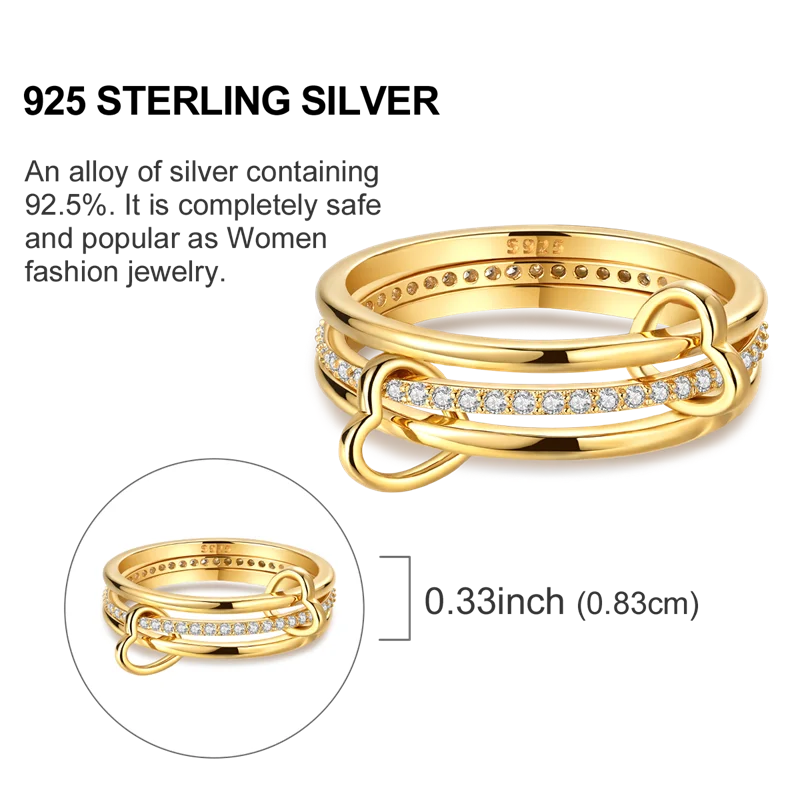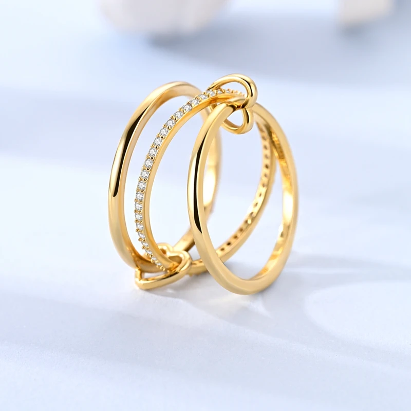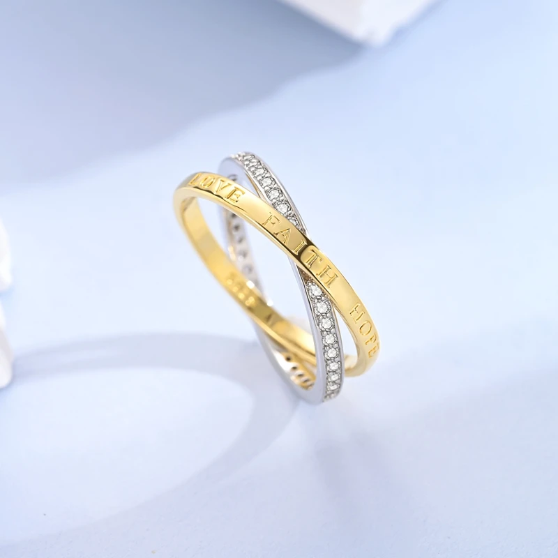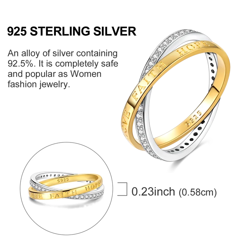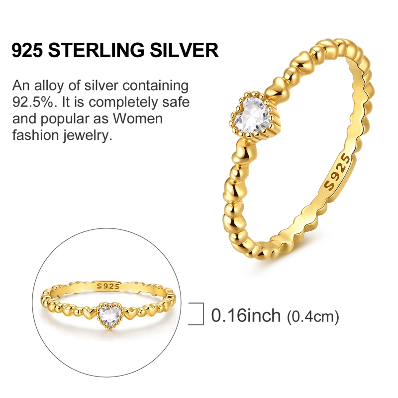 Golden Color Sparking Rings 925 Sterling Silver Popular LOVE Wedding Ring Certified Women Engagement