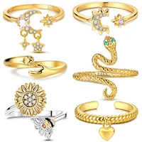 925 Sterling Silver Open Finger Ring Golden Enamel Donut Dazzling Geometric Punk For Women Jewelry Gift Dropship Wholesale