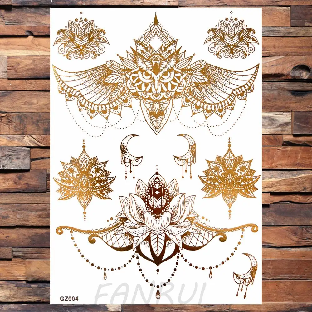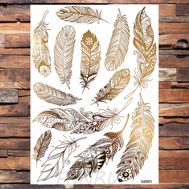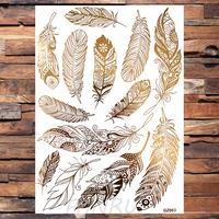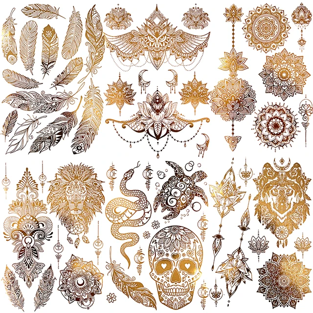 Golden Feather Lion Temporary Tattoos For Women Adult Realistic Fake Mandala Flower Snake Tattoo Sticker Bracelet Washable Tatoo