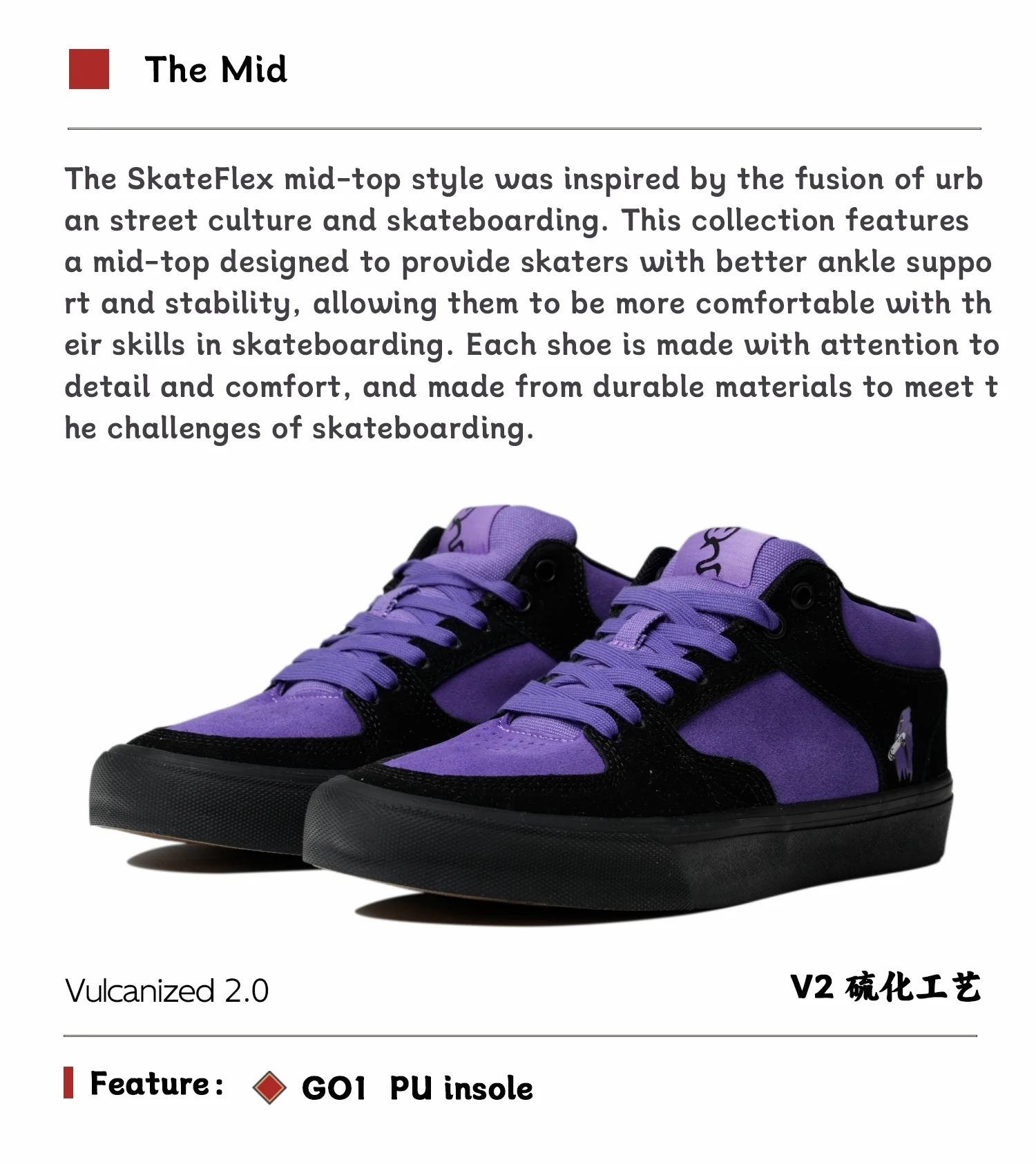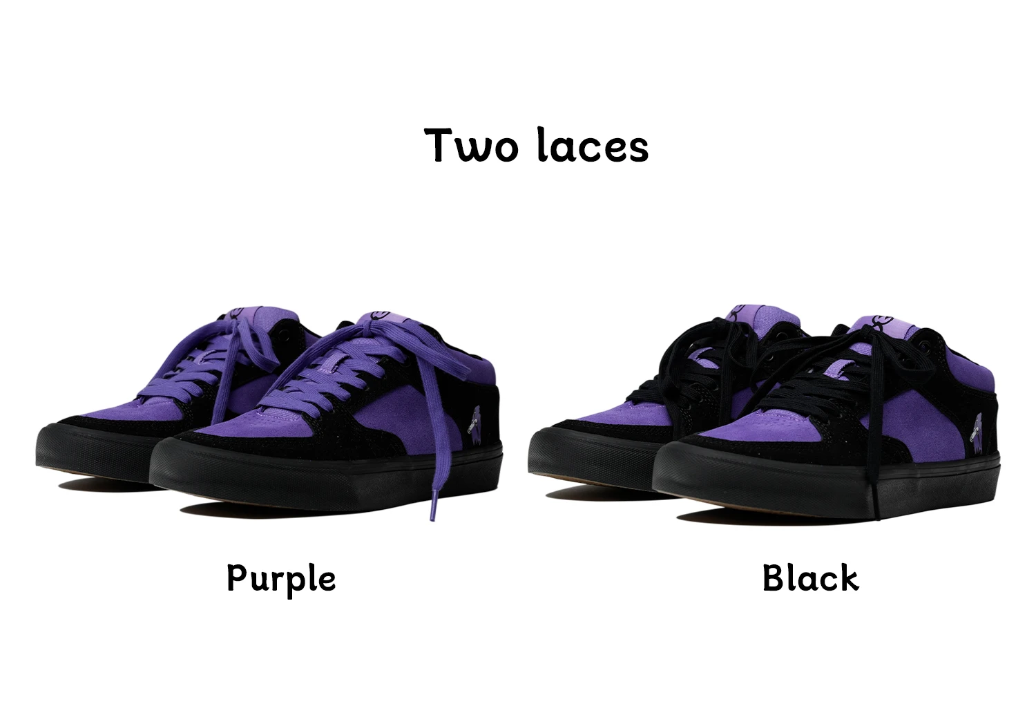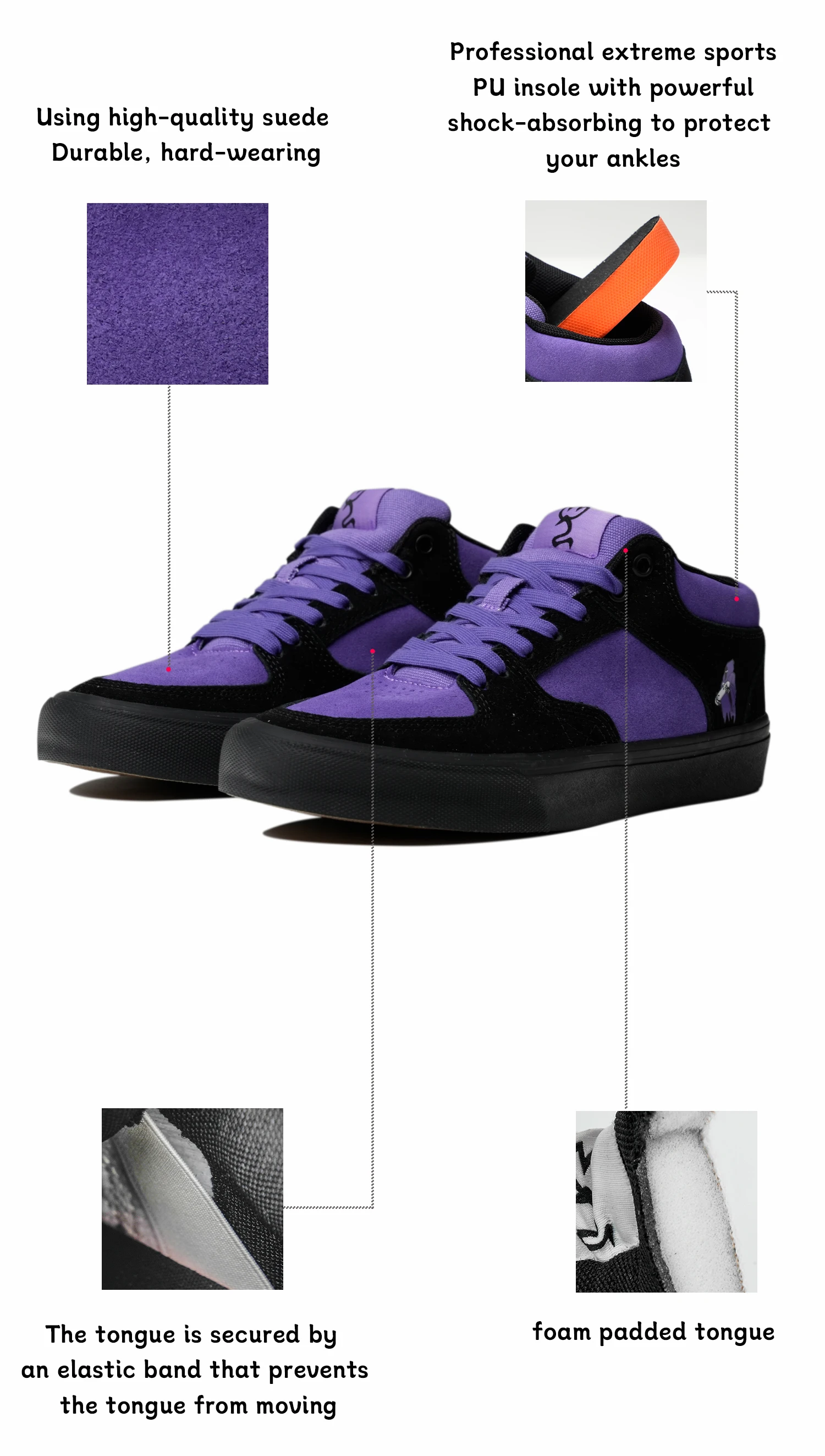 Goluck Purple Skateboarding Shoes for Men Athletic Sneaker Mid Top Anti-slip Casual Soft Leather Lace-up
