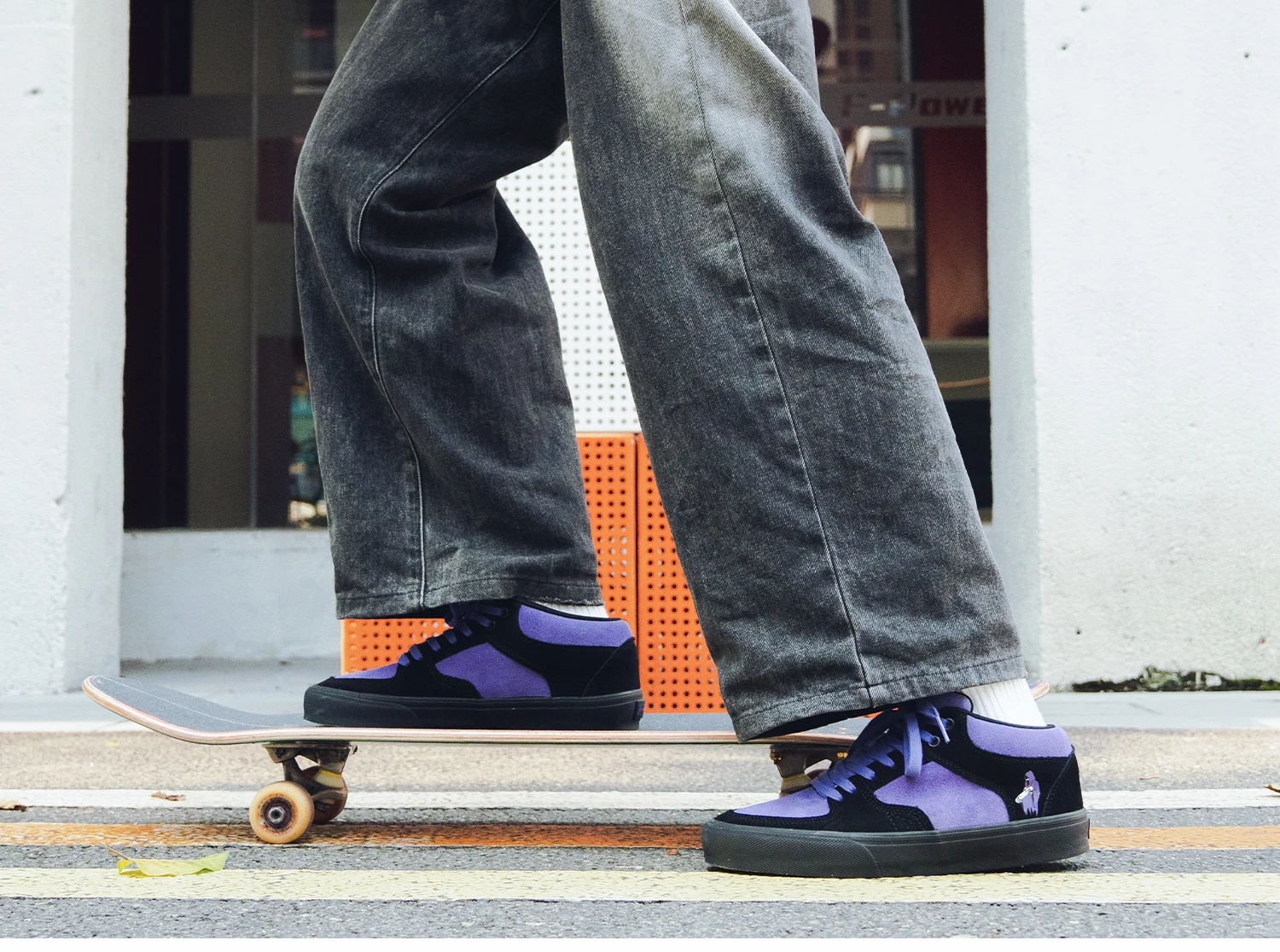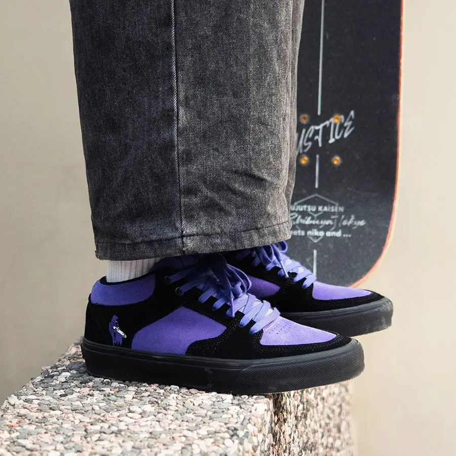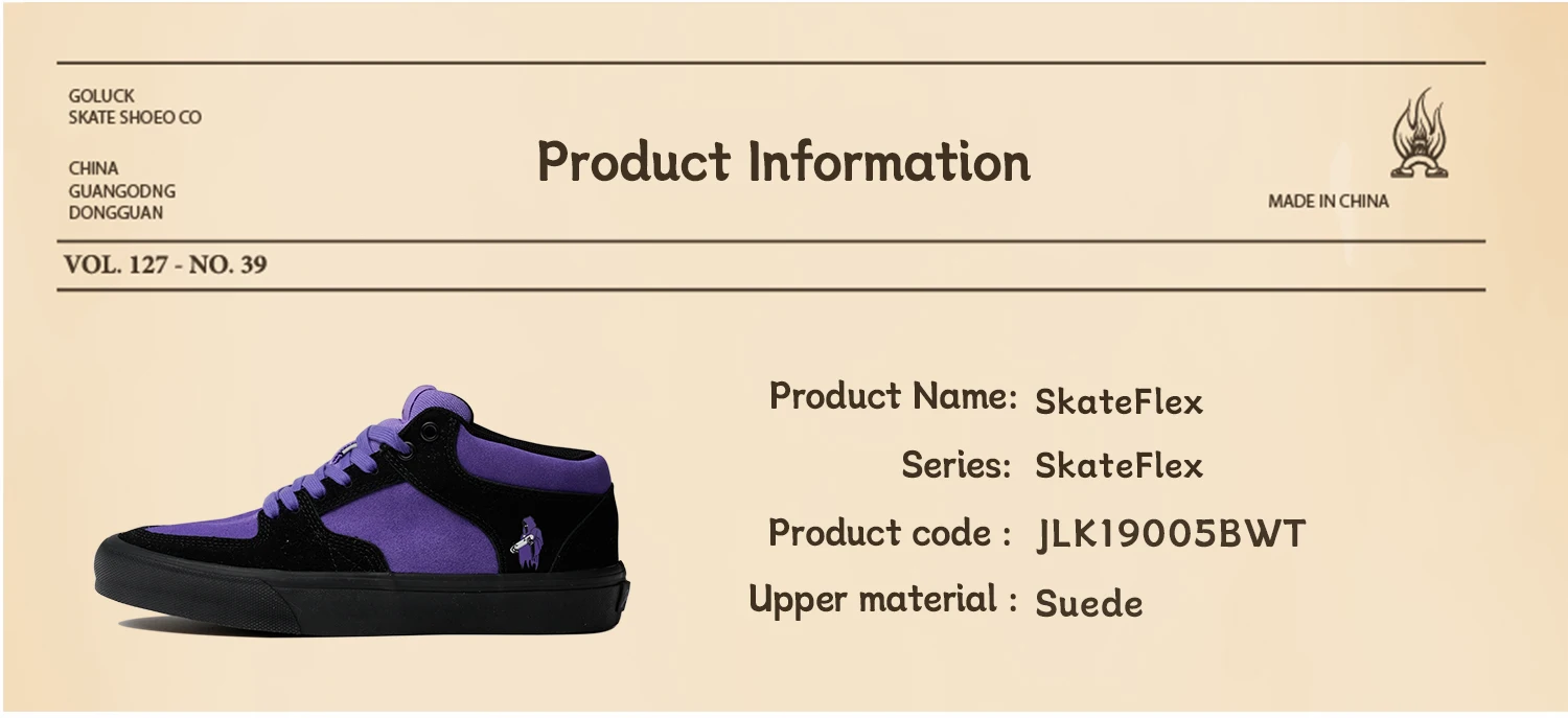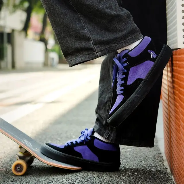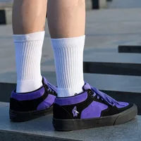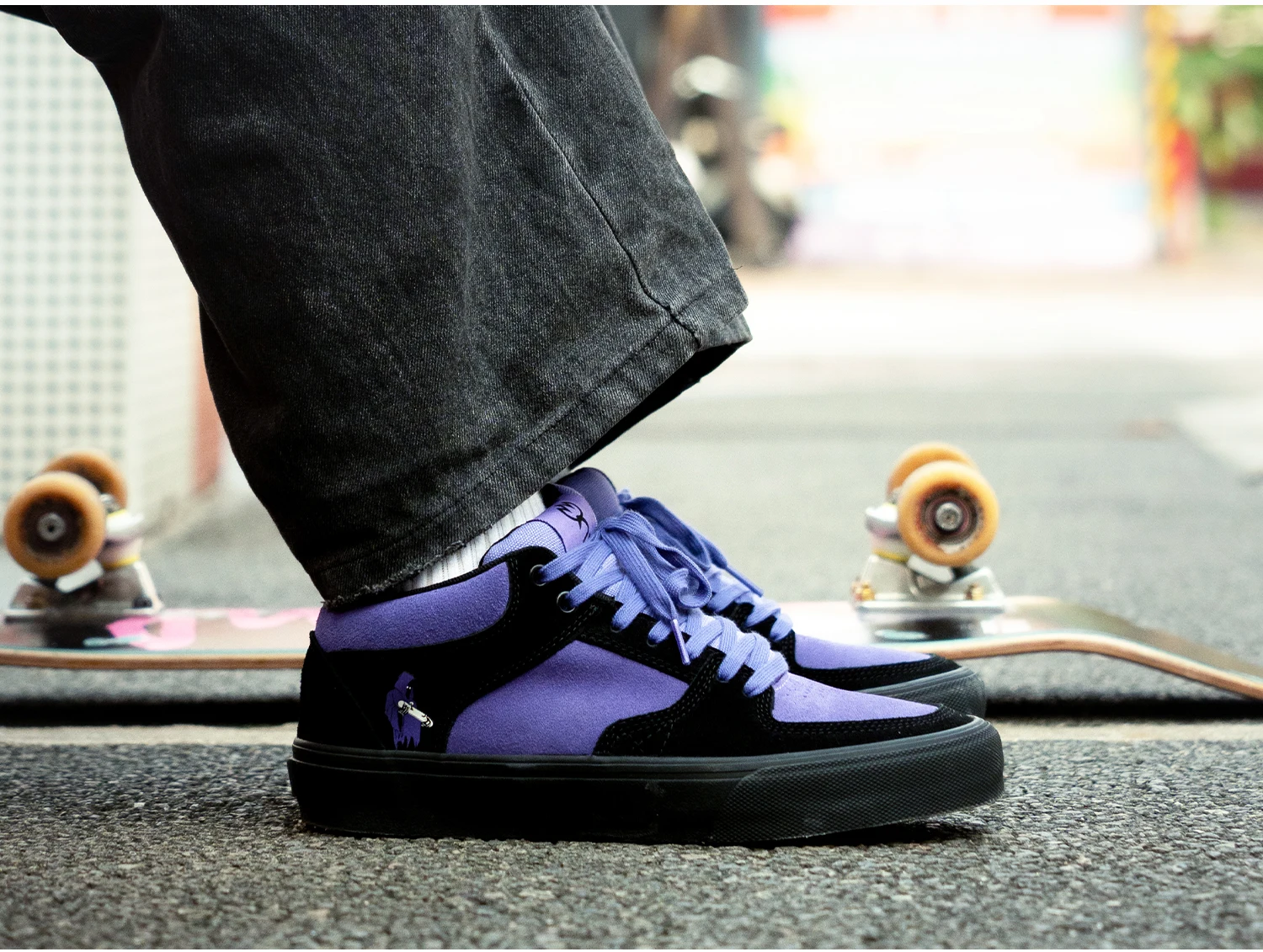 Goluck Purple Skateboarding Shoes for Men Athletic Sneaker Mid Top Anti-slip Casual Soft Leather Lace-up