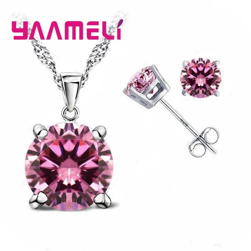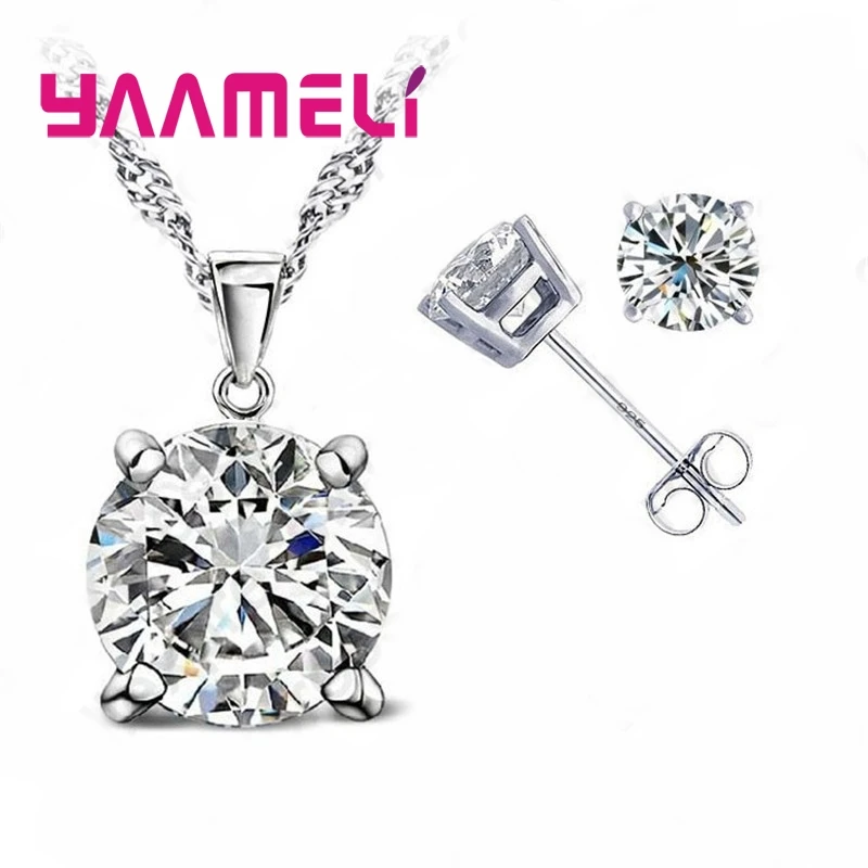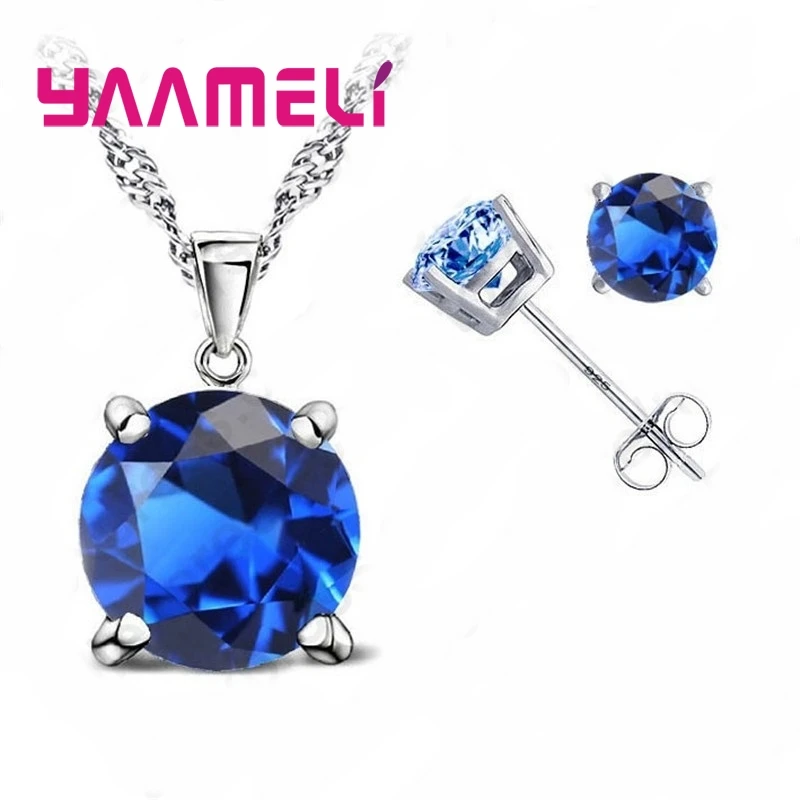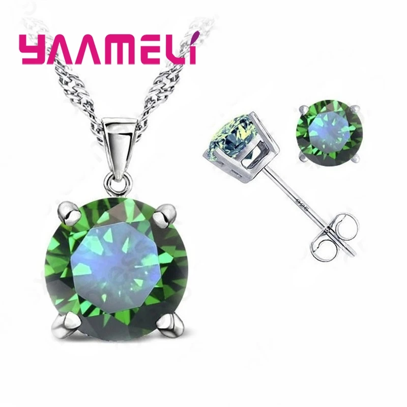 925 Sterling Silver Fine Jewelry Sets Oval Stone Zircon Rhinestone Necklace Earrings for Wedding Party Birthday Gift