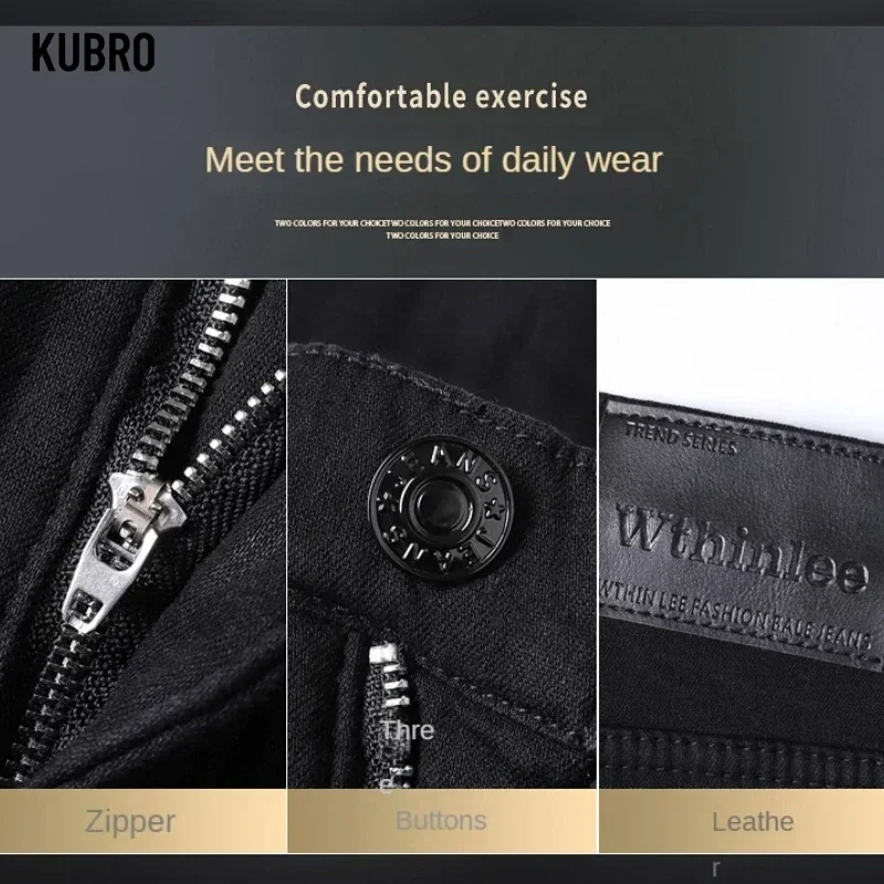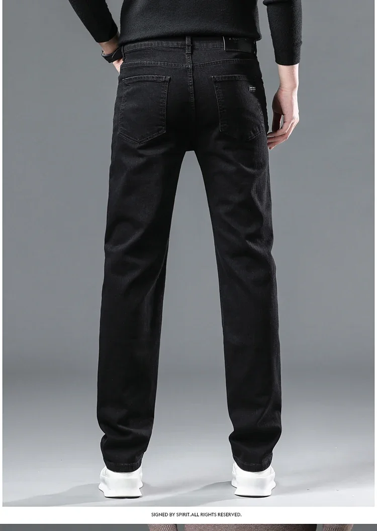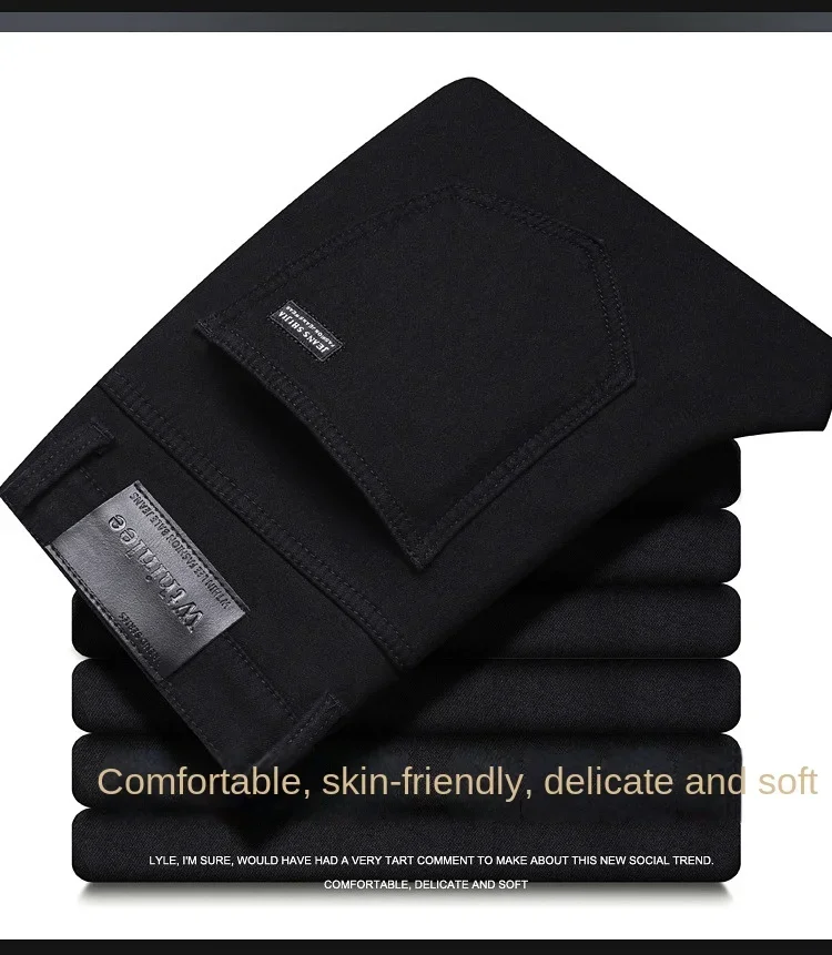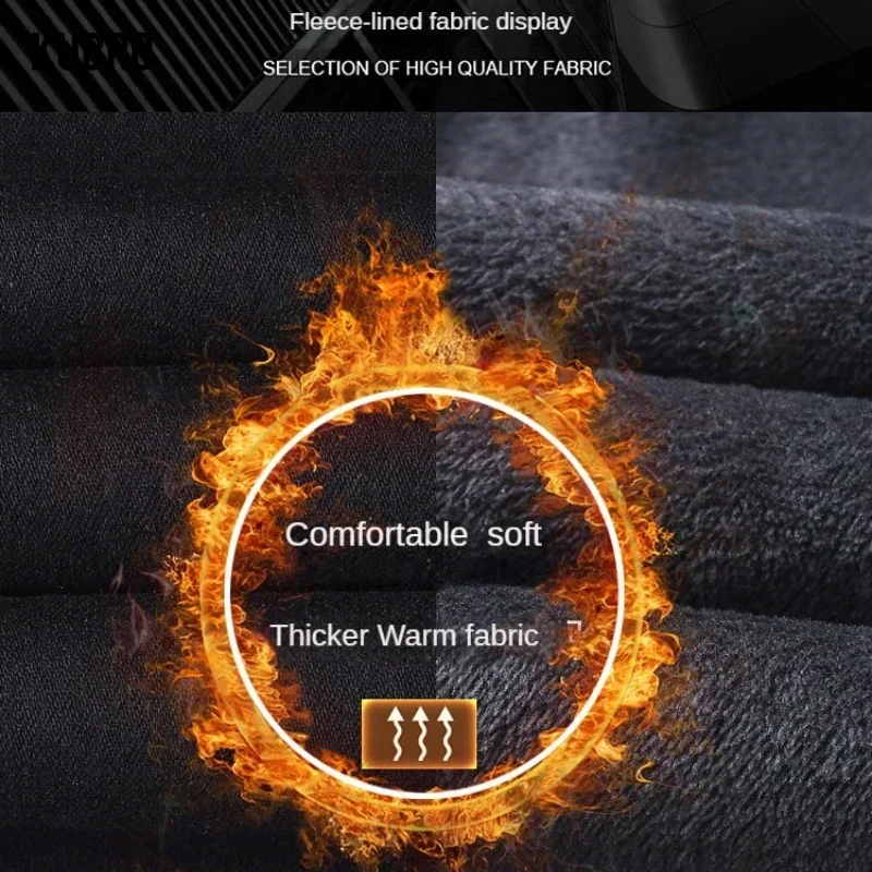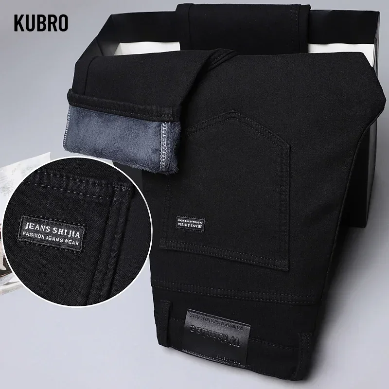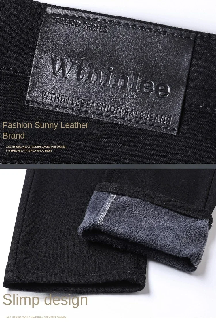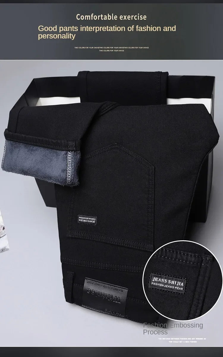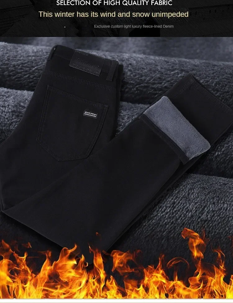 Good Quality Brand Brushed Jeans Men Winter Jeans Men Slim Fit Stretch Thick Velvet Pants Warm Jean Casual Fleece Trousers Male