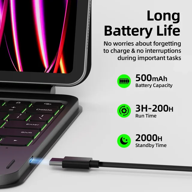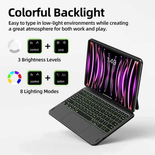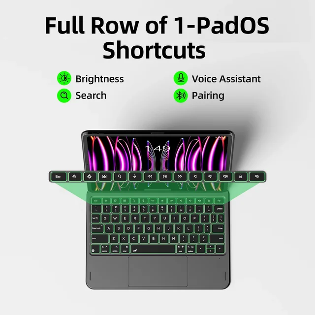 Multi-Touch Trackpad: With precise gesture recognition, the smart keyboard case supports intuitive gestures like pinch-to-zoom, swipe, and multi-finger scrolling for smooth navigation & workflow efficiency enhancement.