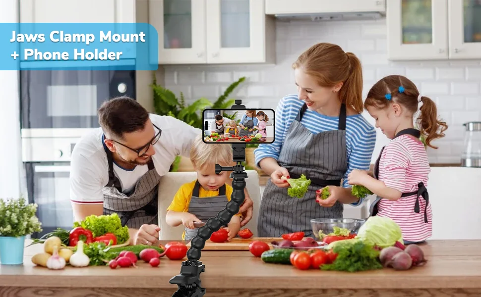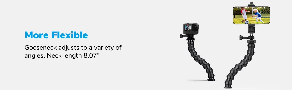 【Fully Adjustable】Optional neck adjusts to enable a variety of shooting angles. Rotate phone holder mount between landscape mode and portrait mode to watch media handsfree, make Facetime calls, read recipes, take selfies, overhead video recording.