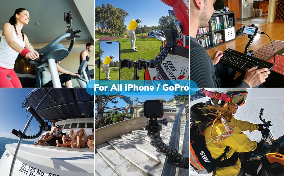 【Wide Compatibility】Bed desk phone clip mount is compatible with 4-7″ devices including Apple iPhone 16 15 14 13 12 11 Pro, Pro Max, Plus, Mini, SE, XS, XS Max, XR, X, 8 7 6 6s Plus, Samsung Galaxy S24 S24+ S24 Ultra etc. Compatible with all GoPro Hero 13 12 11 10 9 8 Max DJI Osmo and most action cameras.