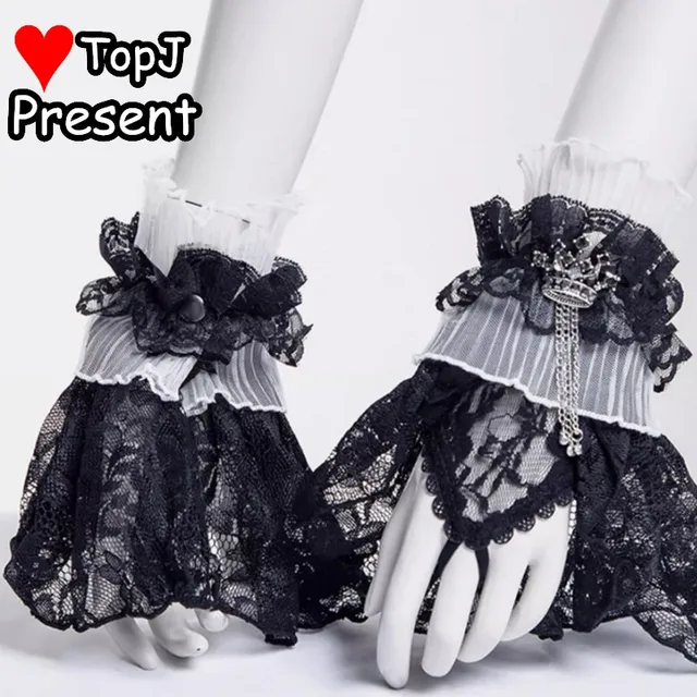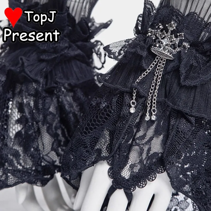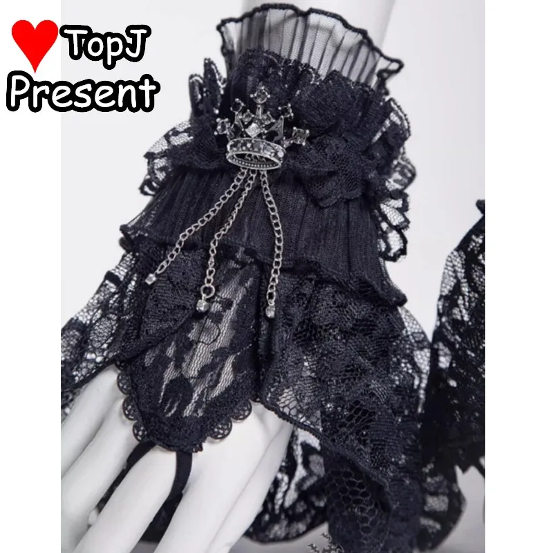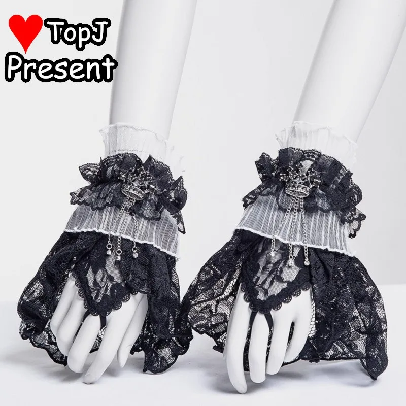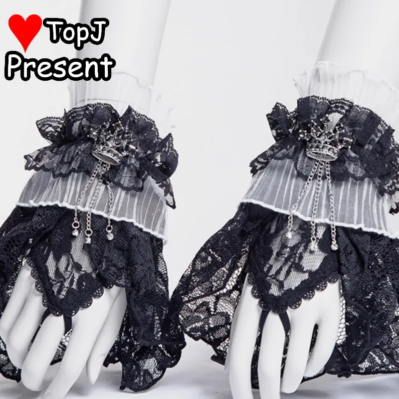 Gothic Noble Lolita Exquisite Crown Lace Gloves Women Y2K Girl Harajuku Punk Subculture Cosplay Halloween