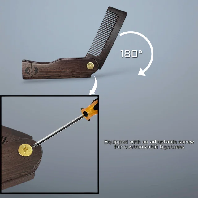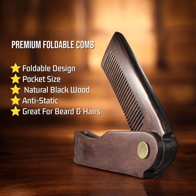 Gracemen Folding Comb Primium Natural Dark Sandalwood Wooden Foldable Beard Comb Small Size Men's Pocket Mustache Hair Comb