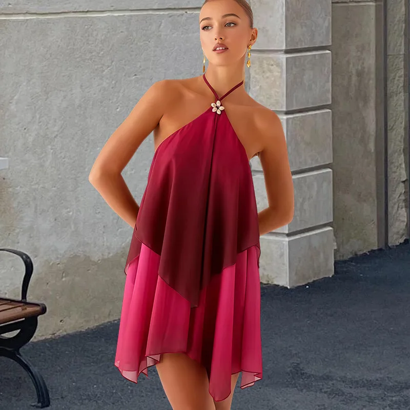 2025 Dress For Women Summer Round Neck Hollow Collar Slim Fit Halterneck Printed Lady Vestidos Off Shoulder Sleeveless Dresses