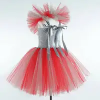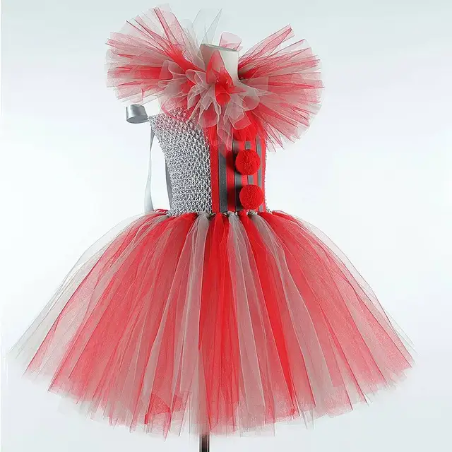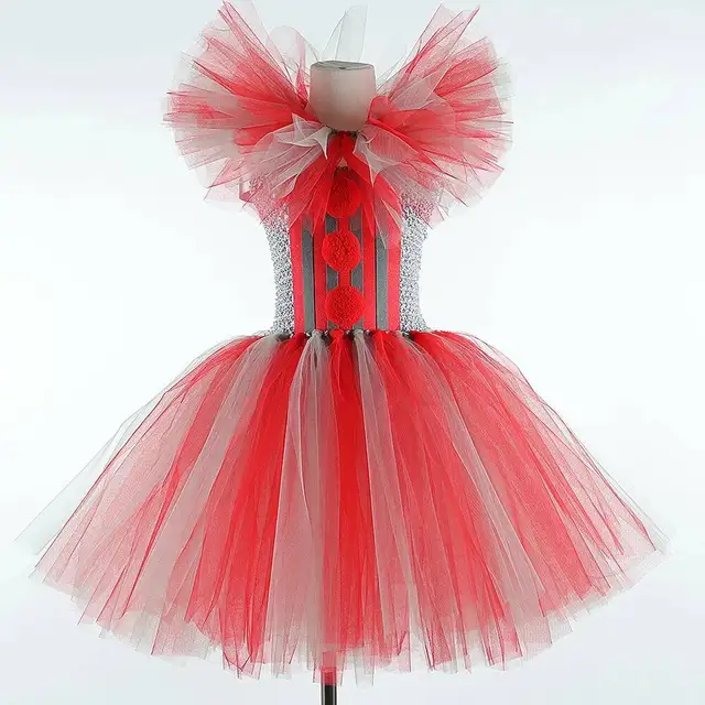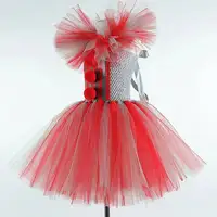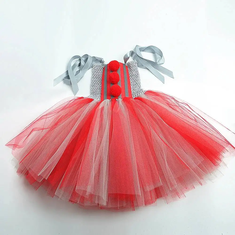 Theme: Gray Red Scary Clown Halloweeen Dress Up Costumes for Girls Kids 1-12 Years Old.
