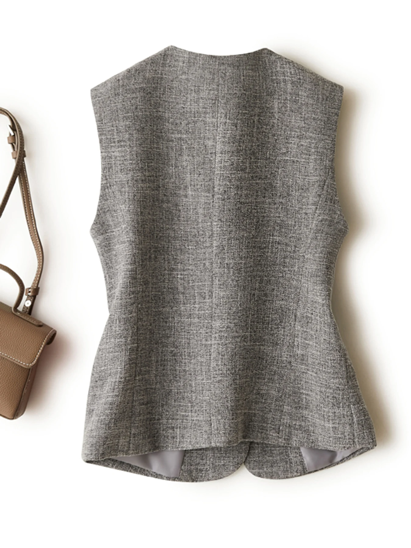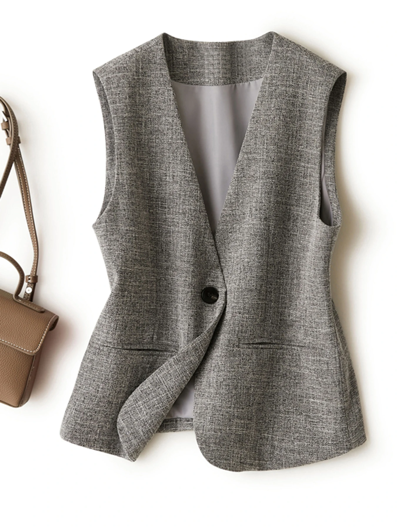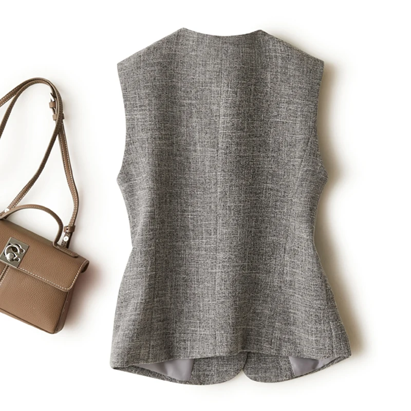 Gray V-neck short vest women’s jacket spring and autumn workplace elegant and generous