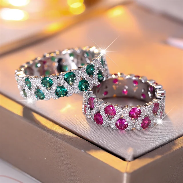 European and American big green zircon ring for men & women party travel jewelry gift Prong Setting 2019 new