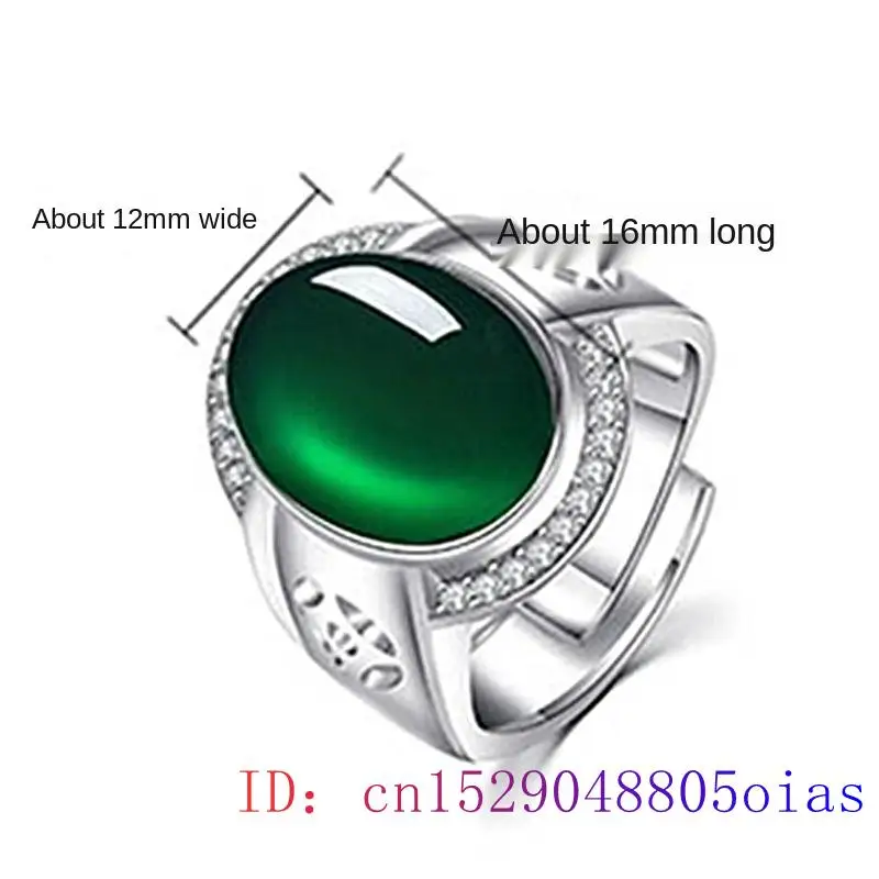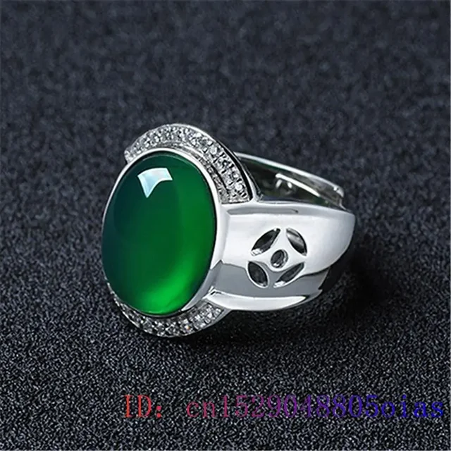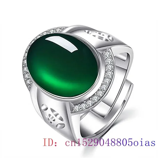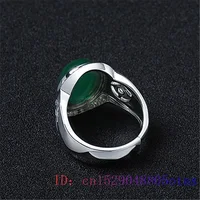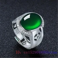 Green Jade Ring Zircon Crystal Natural Jewelry 925 Silver Charm Chalcedony Women Gifts Fashion Gemstone Men Amulet