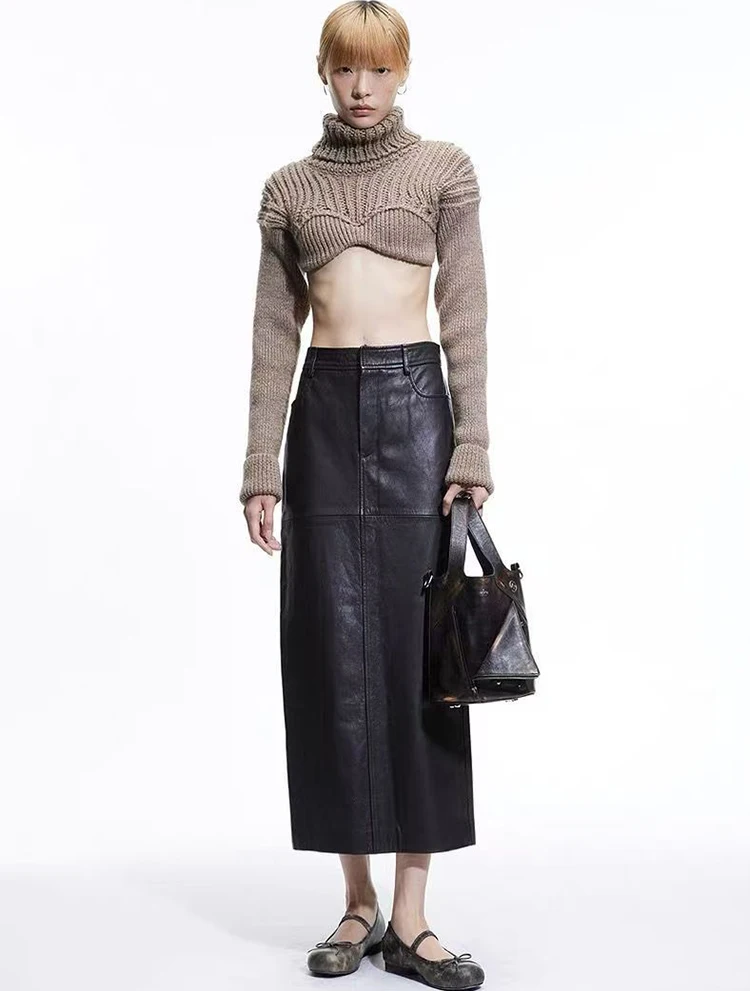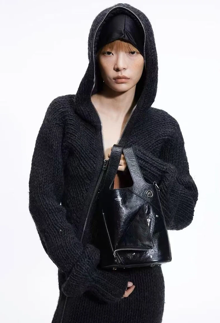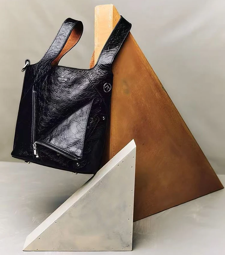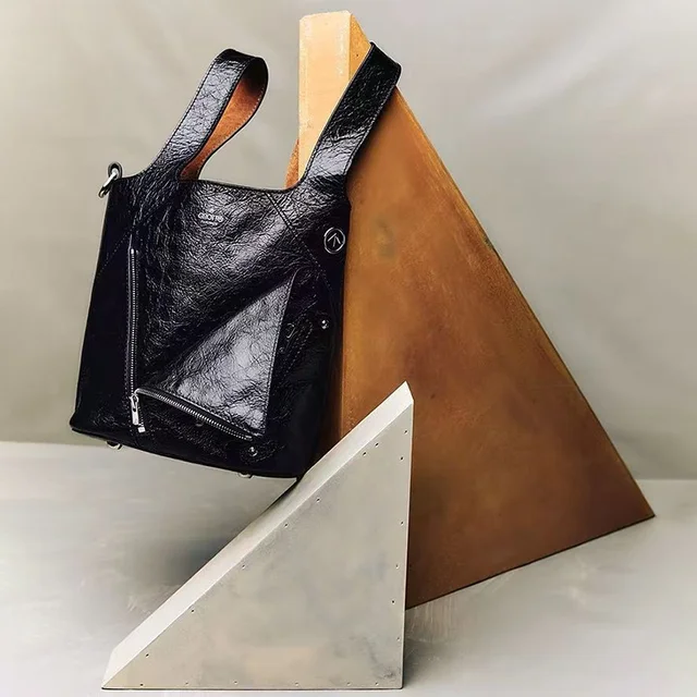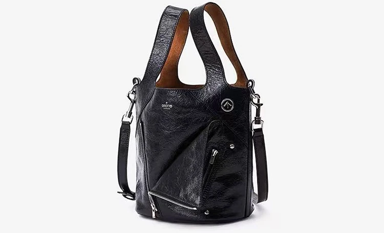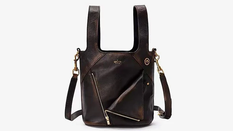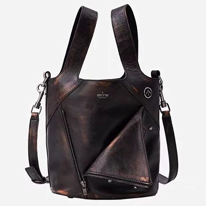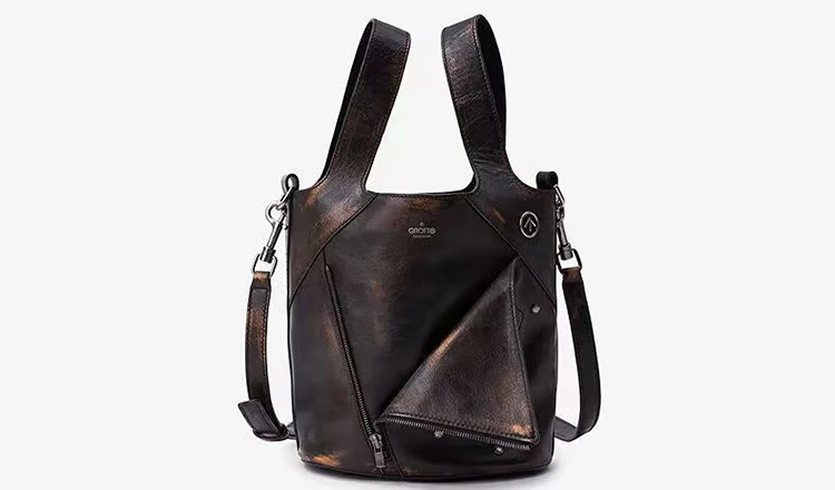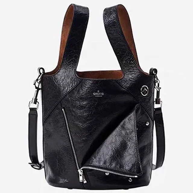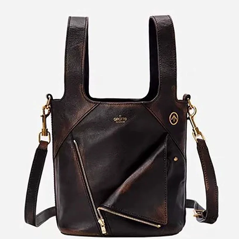 GROTTO leather lapel basket casual retro large capacity versatile single shoulder crossbody handbag